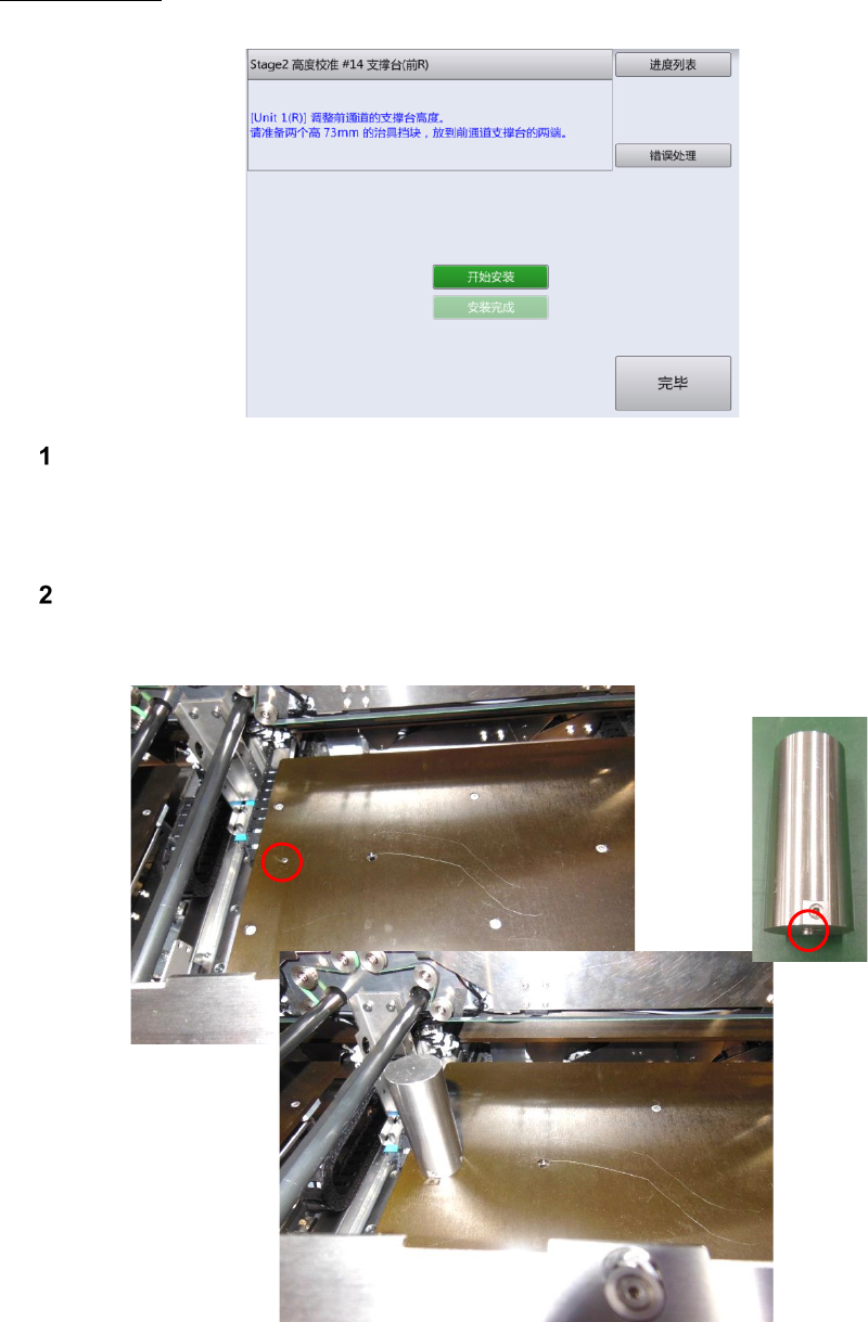 轴软件极限的确认结束后,显示如下画面。将高度调整用的治具块安装到前侧通道。