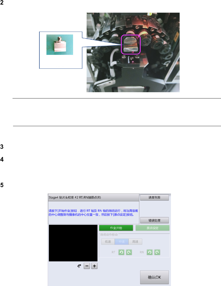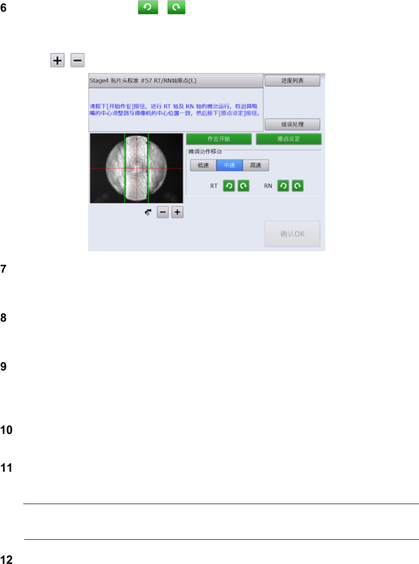 使用微调动作移动按钮( / )旋转 RT 轴和 RN 轴,要调整到治具吸嘴的中心