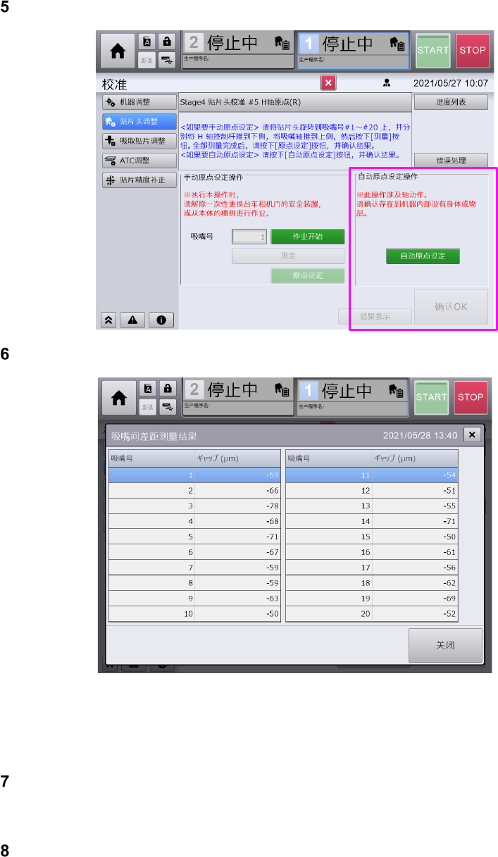 确认各吸嘴号的差距值测定正确没有问题后,触摸[关闭]。