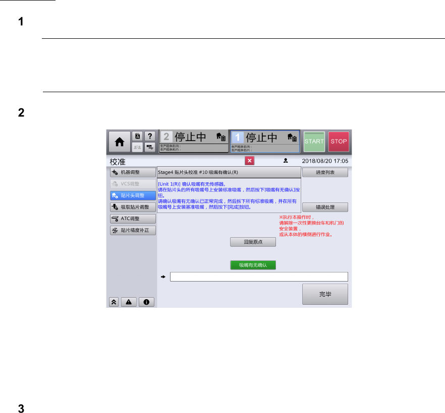 如果全部吸嘴号上带有吸嘴,画面下方的结果显示栏内将显示[正常