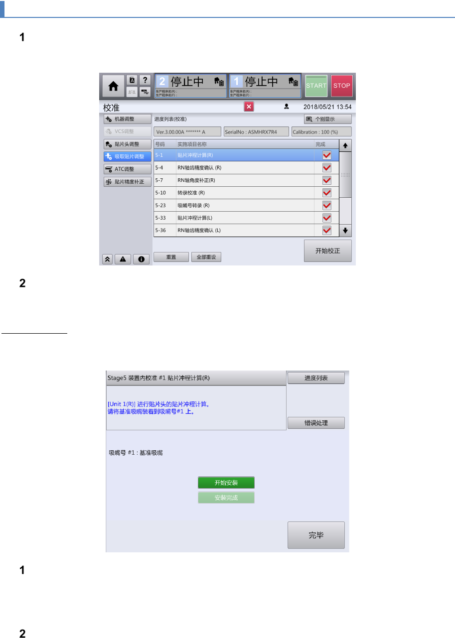 全部工序完成后,显示为[已完成贴片头校准。]。