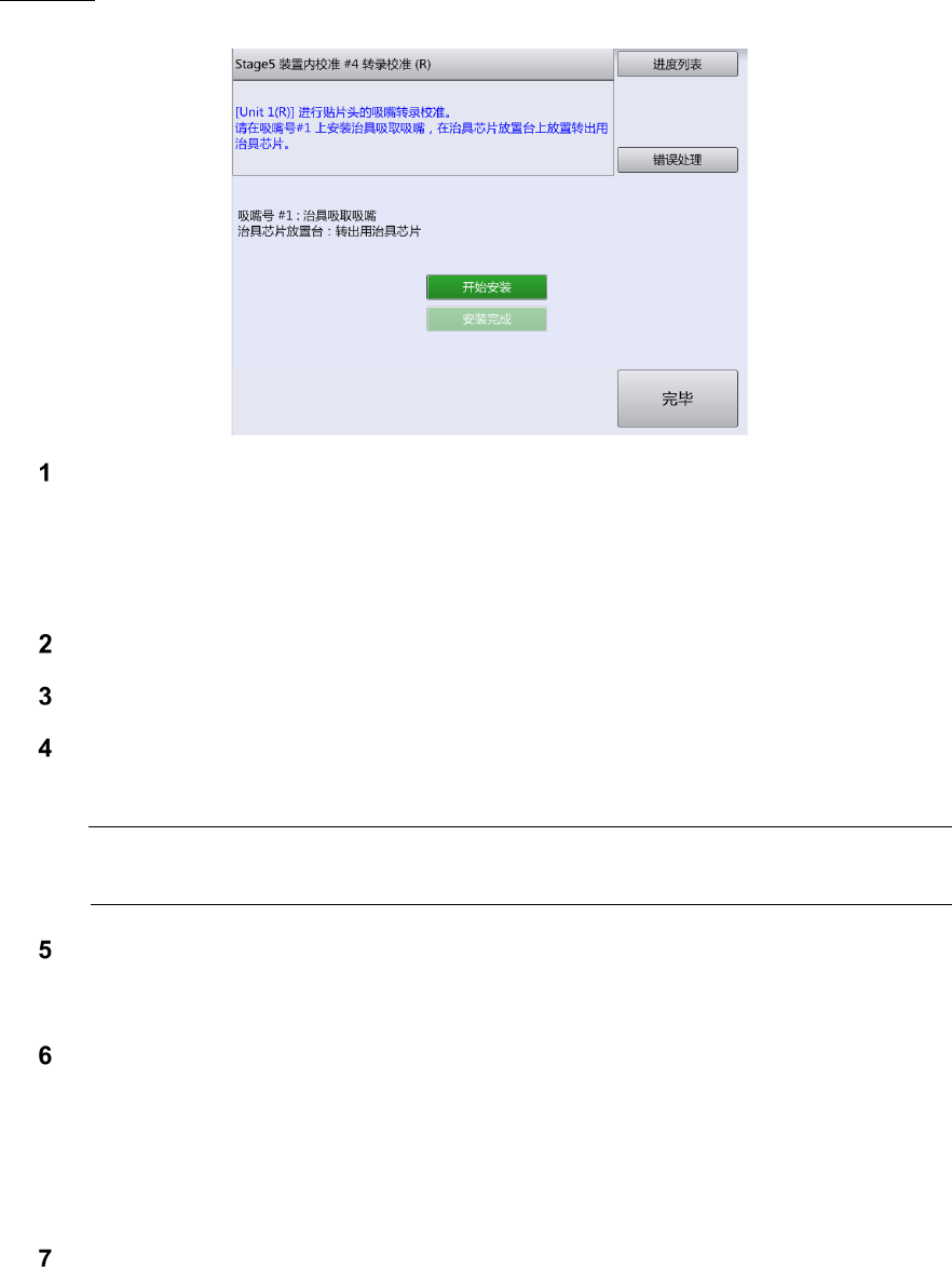 贴片头的贴装行程确定结束后,显示如下画面。安装右侧装置各吸嘴号转写校准用的治具吸取吸嘴。