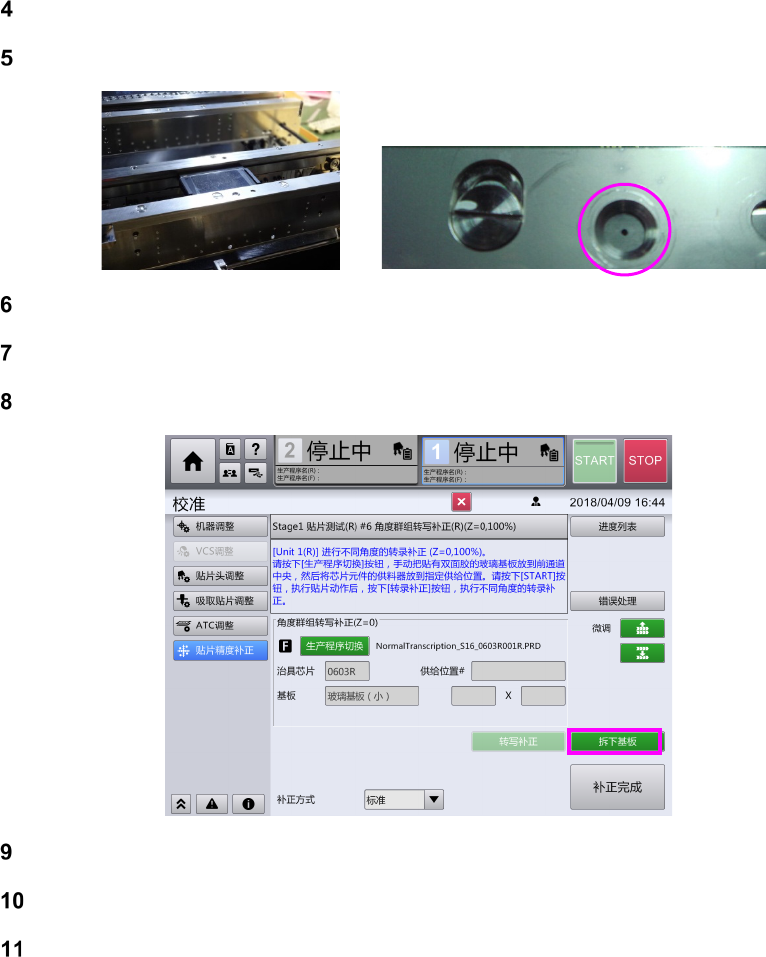 长按[START],开始贴装。贴装结束后,按[转写补正],执行补正。