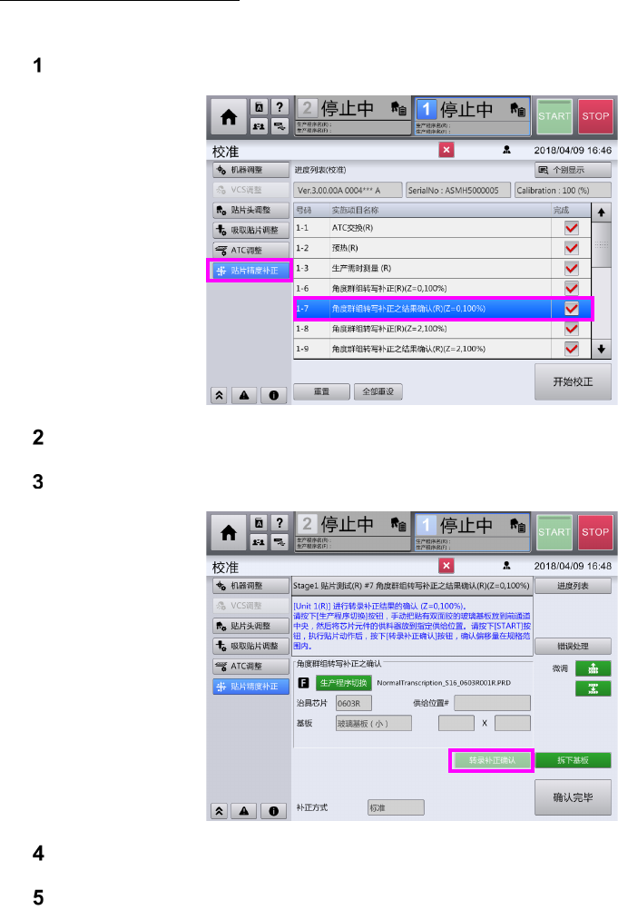 请按照相同的步骤分别执行“Z=2,100%、Z=4,100%”的角度群组转写补正及确认。