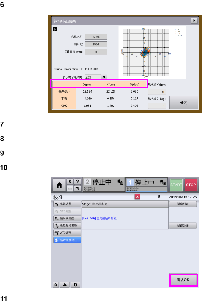 如果“偏差 3σ”的值在规格以内,转写补正操作即结束。