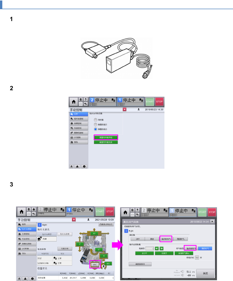重复操作顺序 4 ~操作顺序 12,测定全部贴装头的真空压力。
