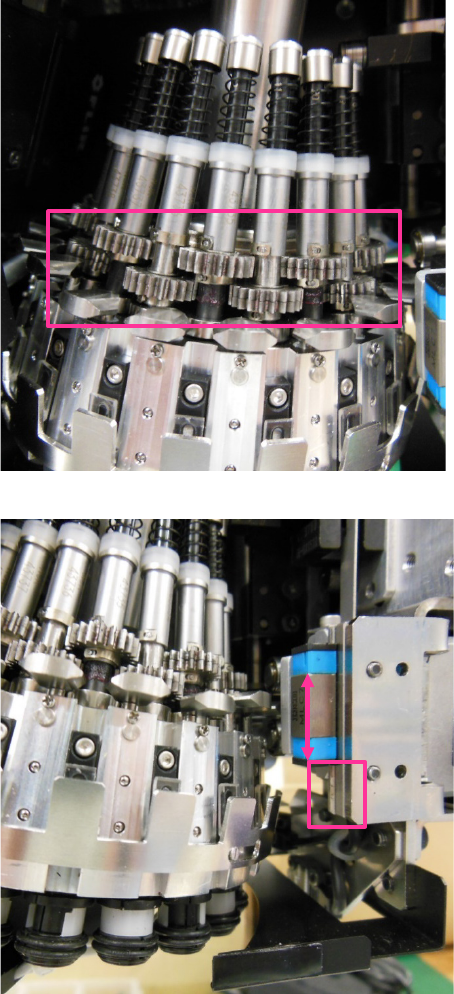 边旋转吸嘴轴和转塔,边用毛刷等向