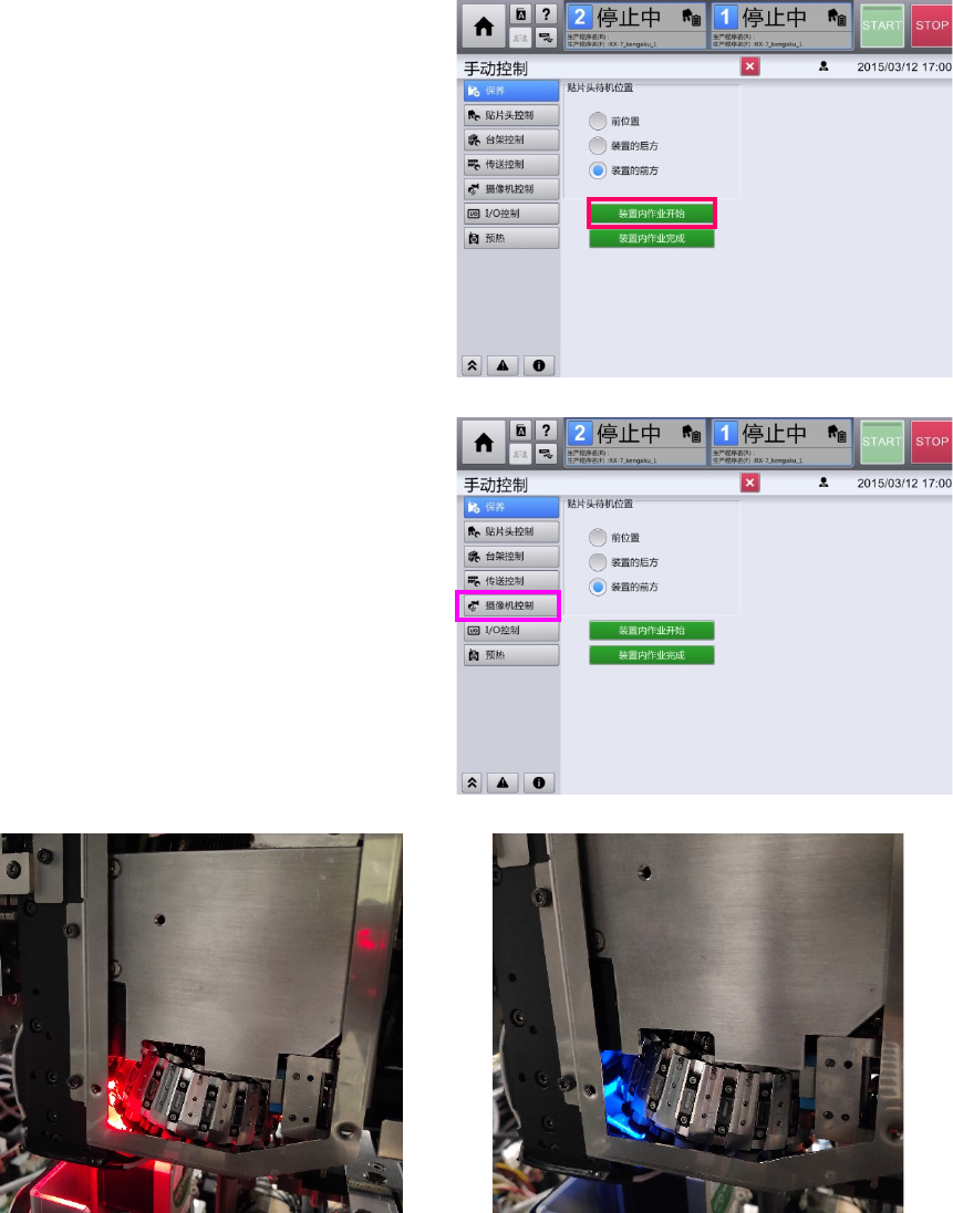 台车上升,贴片头向身前移动。