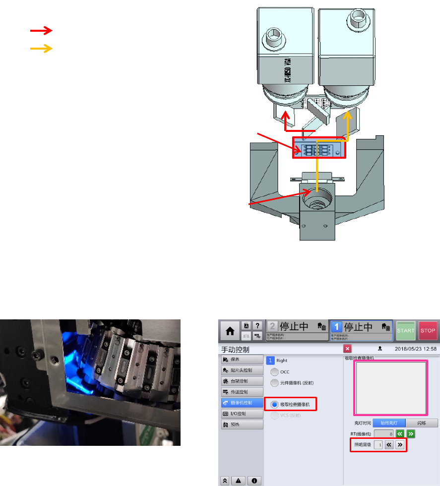 清洁反射镜后,检查元件摄像机图像和吸取检查摄像机,检查有无脏污或垃圾等。