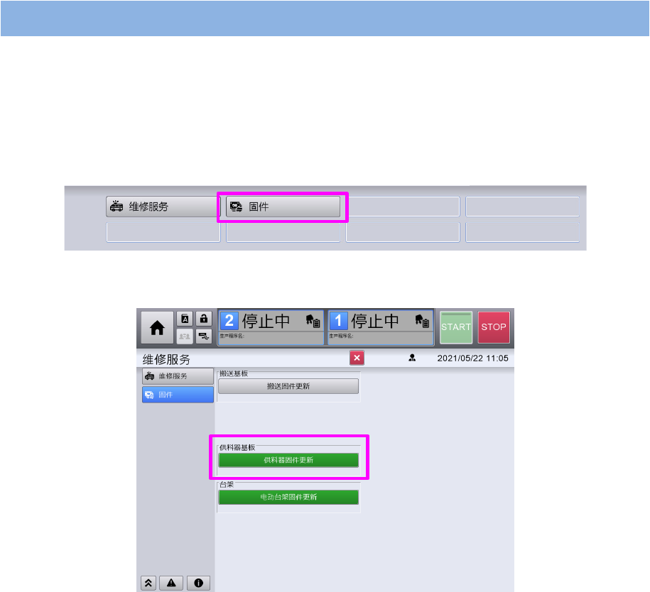 按下[供料器固件更新]。