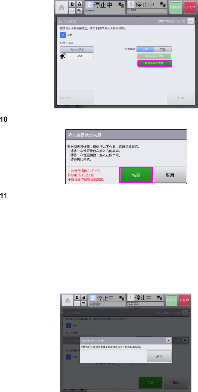 安装后,按[完毕贴片头交(更)换]。
