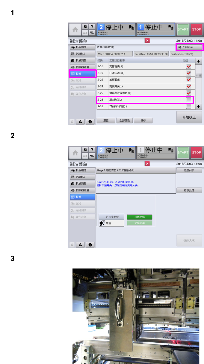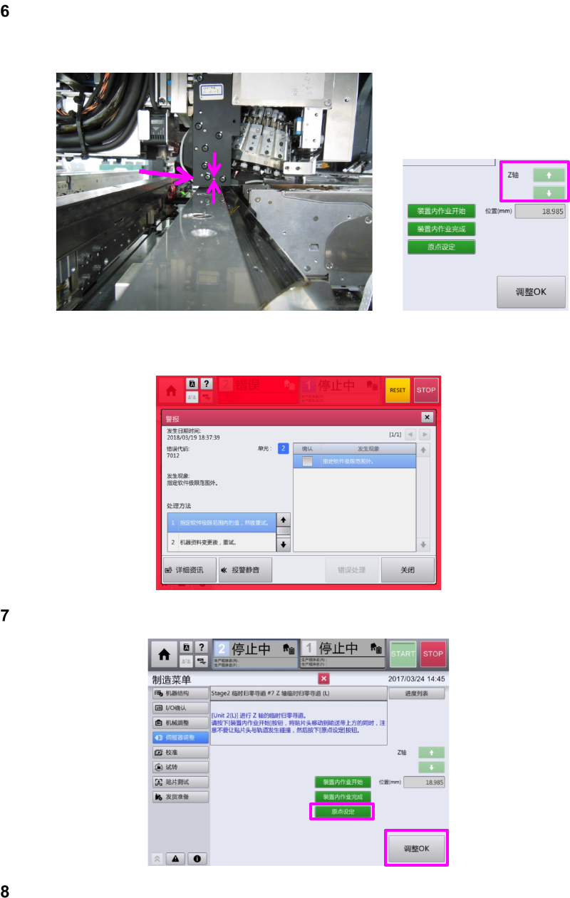 请按伺服调整画面中的箭头进行调整,使基板按压与贴片头的间隙为