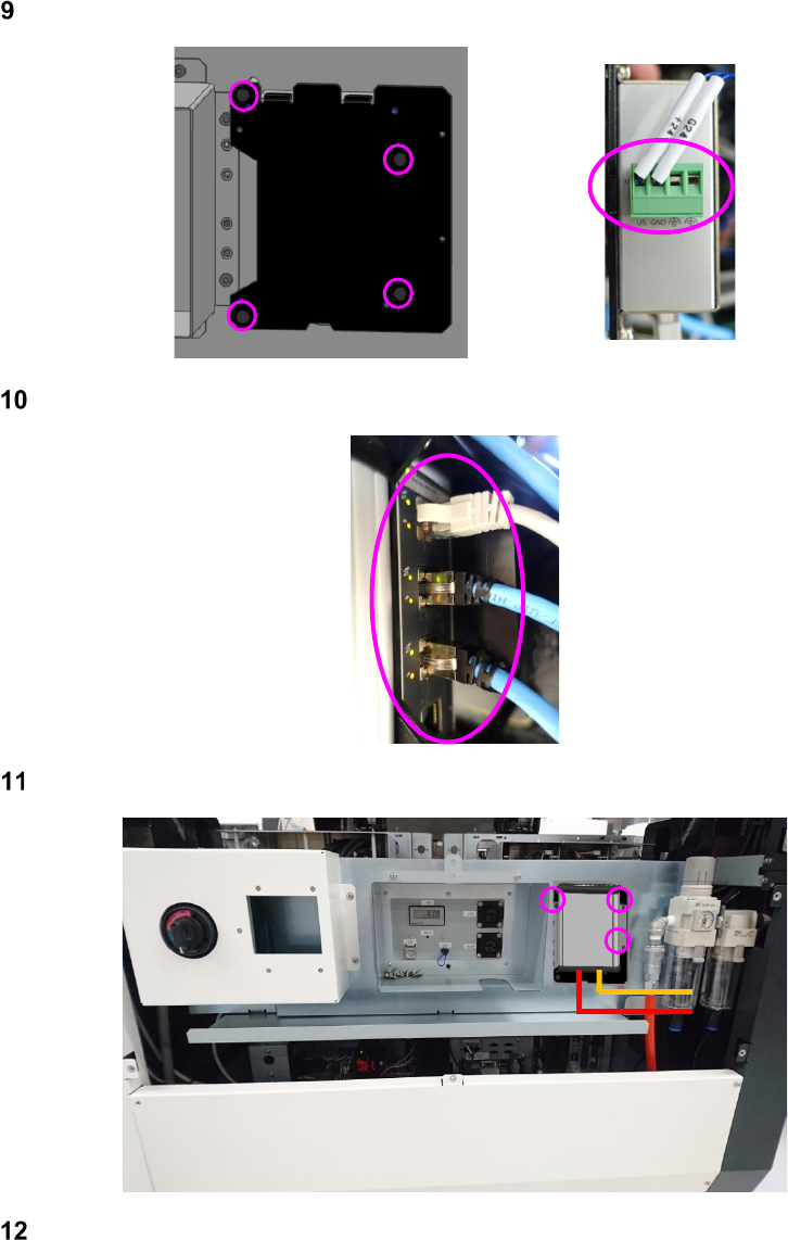 连接 SWITCHING HUB 的电源线(绿色接口),将 HUB 托架固定在 IFS 底座板上。