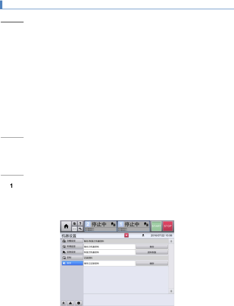 ② 从操作画面跳转到机器设置,切换为“维修”画面,保存机器数据。
