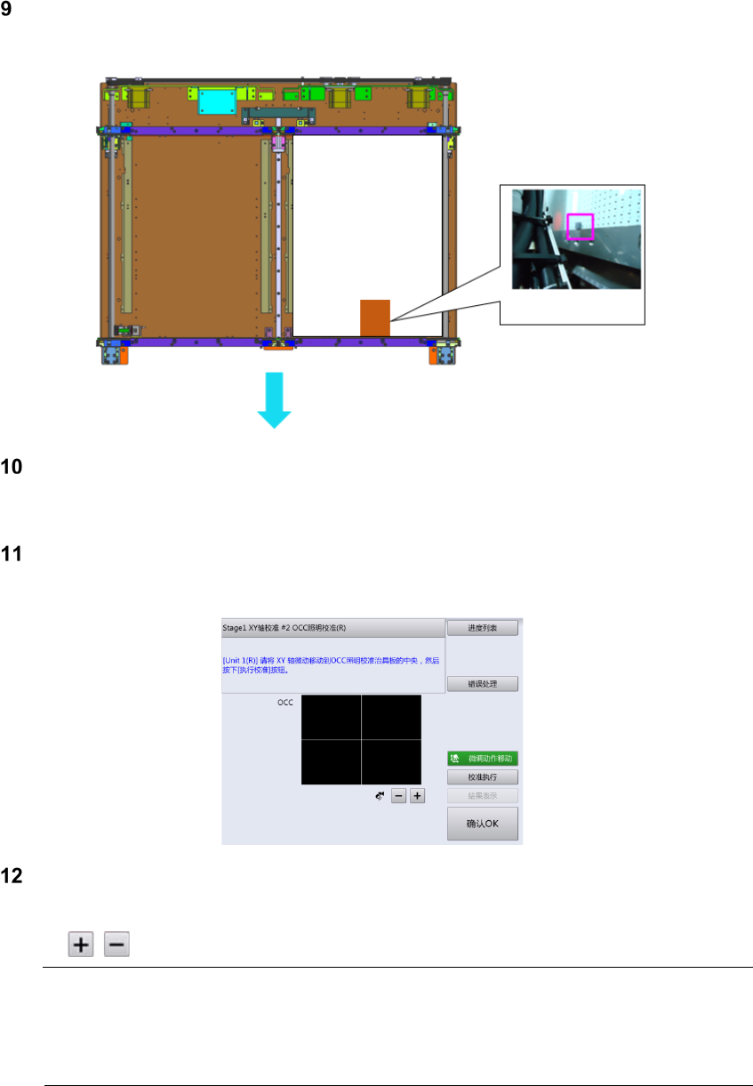 触摸画面左下方[微调动作移动]画面的按钮,使 XY 轴向 OCC 照明用治具板的中央