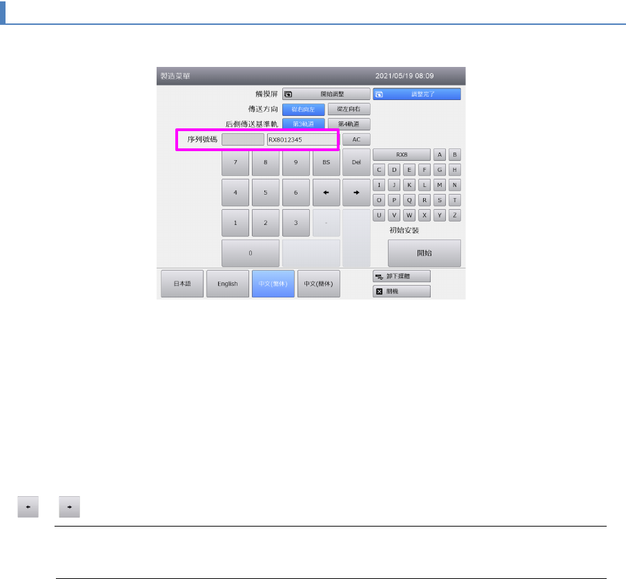 在[制造菜单]画面上触摸出厂编号的文本框,输入序列号码。