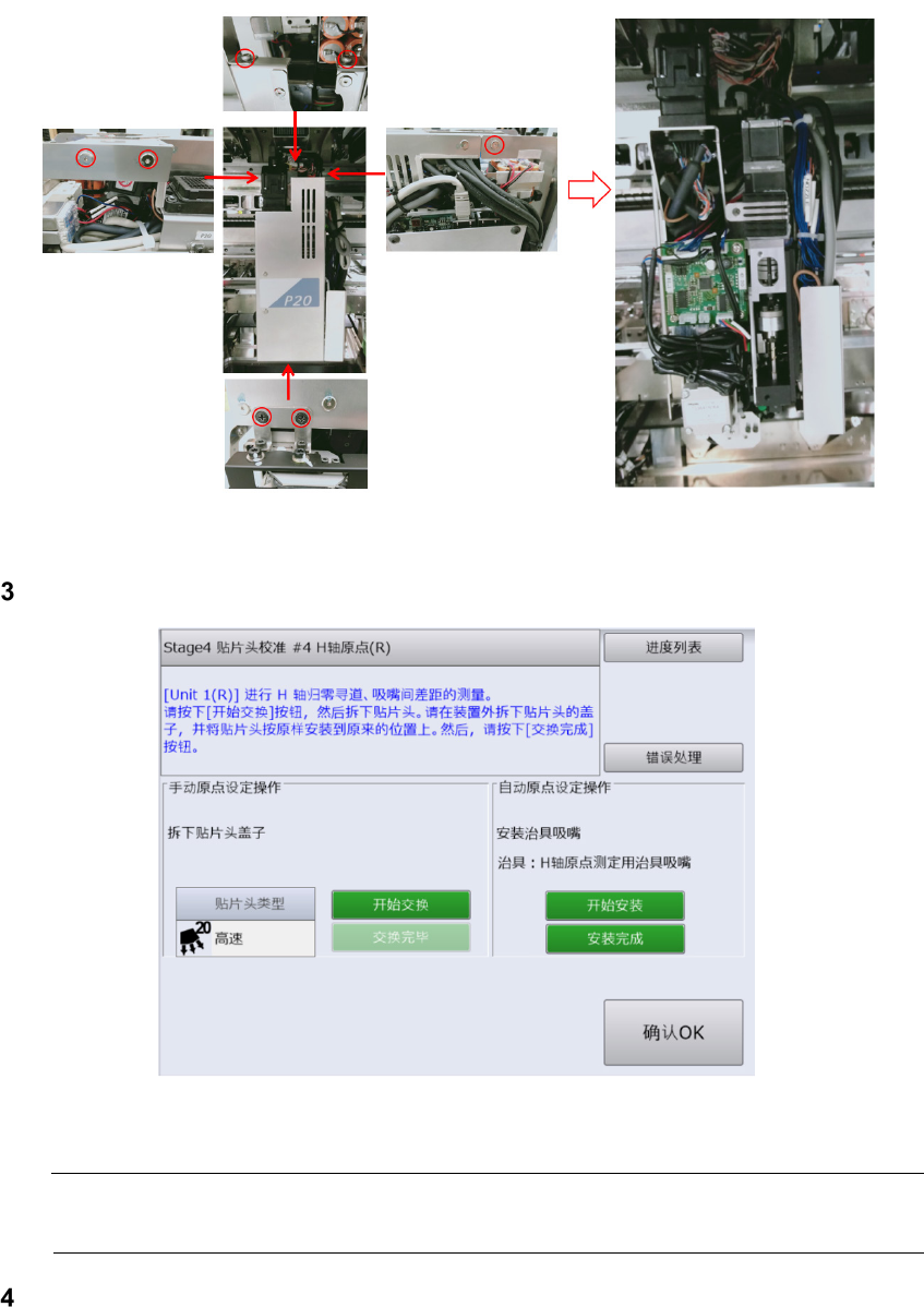 取得所安装的贴片头的信息,接通贴片头的电源。进行左右一次性更换台车上升、前面护罩的