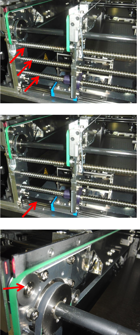 第 2 章 操作顺序书 2- 4. 维护 168 传送部 1 . 梯形螺纹丝杠的清洁及 注油 用毛刷在螺丝滑动部上 涂敷壳牌爱万 利 EP2 润滑脂,双通道 时涂 3 个螺 丝,单通道时涂 1 个螺丝。 注意 过多的润滑脂会附着到 基板或元件 上,引起品质降低,请 务必擦掉。 2 . LM 导轨的清洁及注油 用毛刷在 LM 导轨的轨道面上涂敷 壳 牌爱万利 EP2 润滑脂。 3 . 传送皮带的清洁 用回丝干擦,去掉附着 在皮带上的脏 污…
