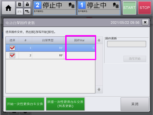 显示出搬送固件的更新画面后,请按下固件更新的空栏部分。