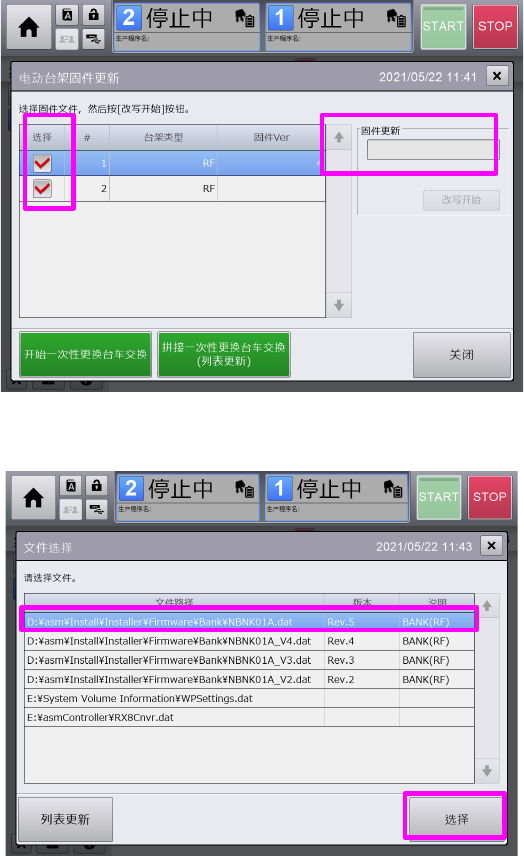 按下[台架固件更新]。