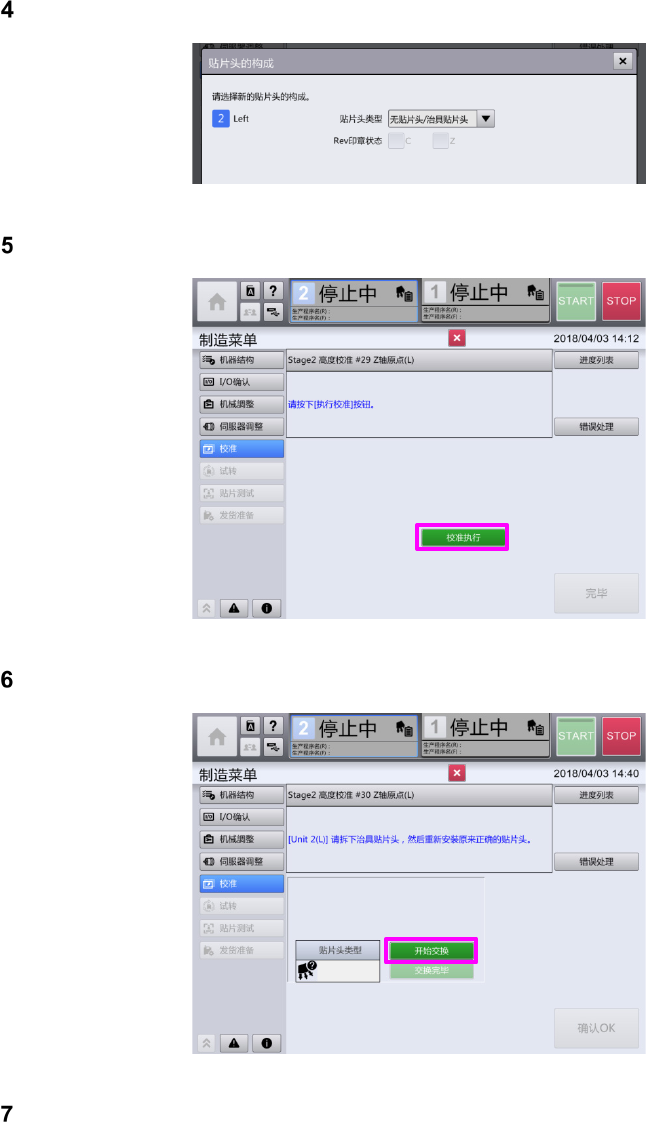 安装治具,按下画面的“交换(更换)完毕”。