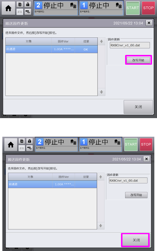 固件更新结束后,按[关闭],开始机器的关机。