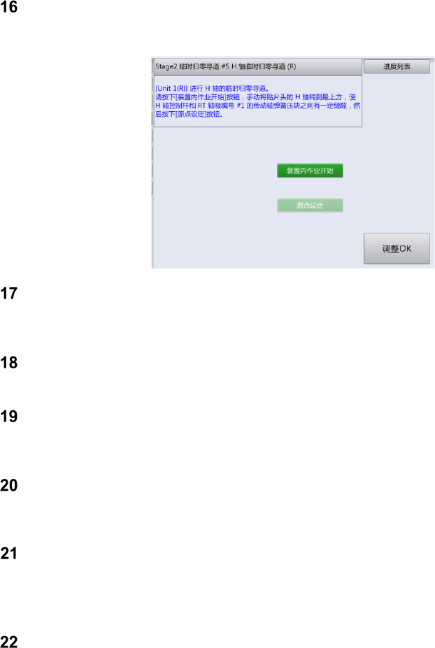 左侧装置也与右侧装置相同,根据画面的指示按照 Z 轴、XY 轴、RT/RN 轴、H 轴的