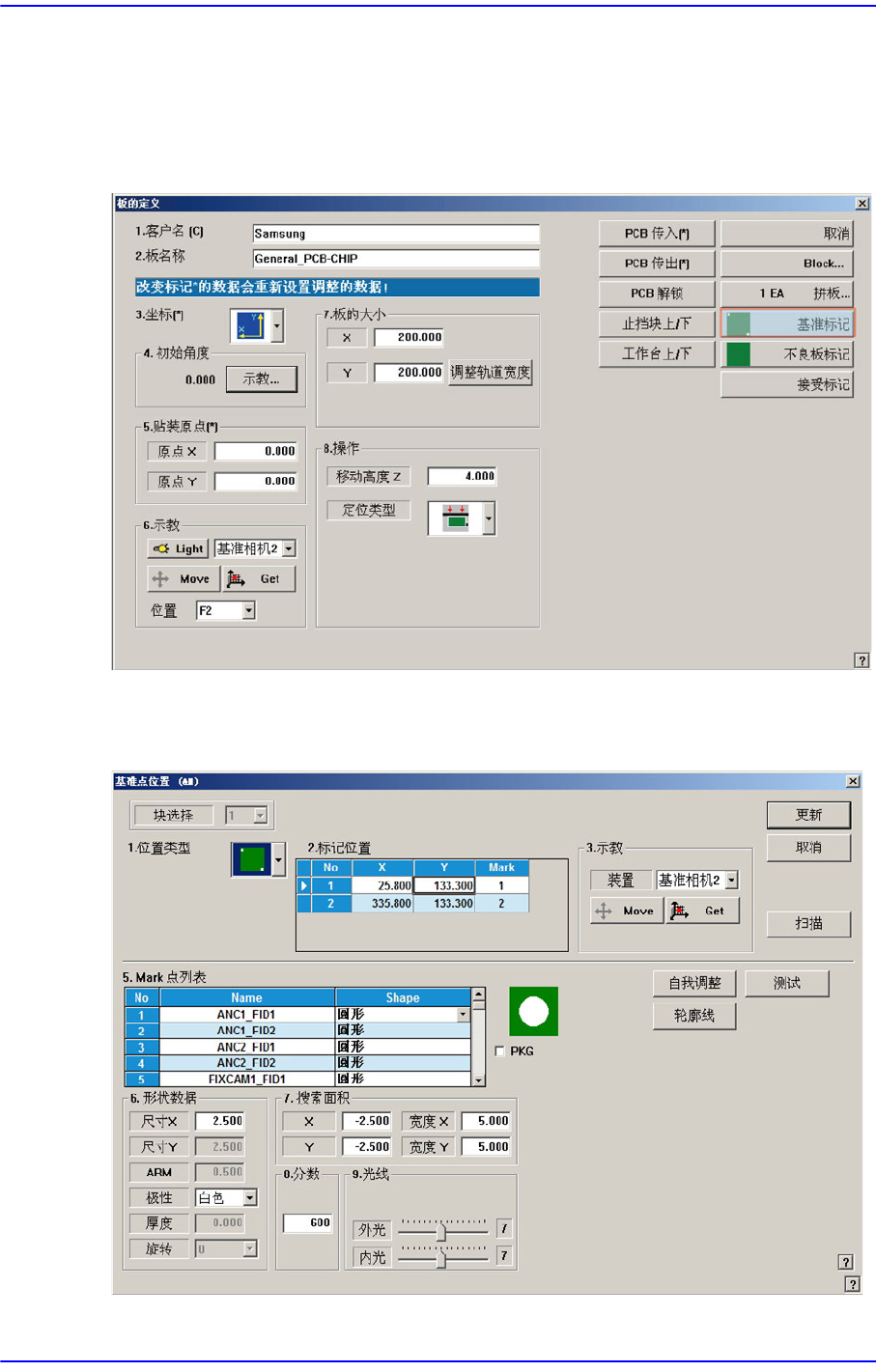 PCB上有基准点标记时,设定基准点标记的位置和标记的数据。