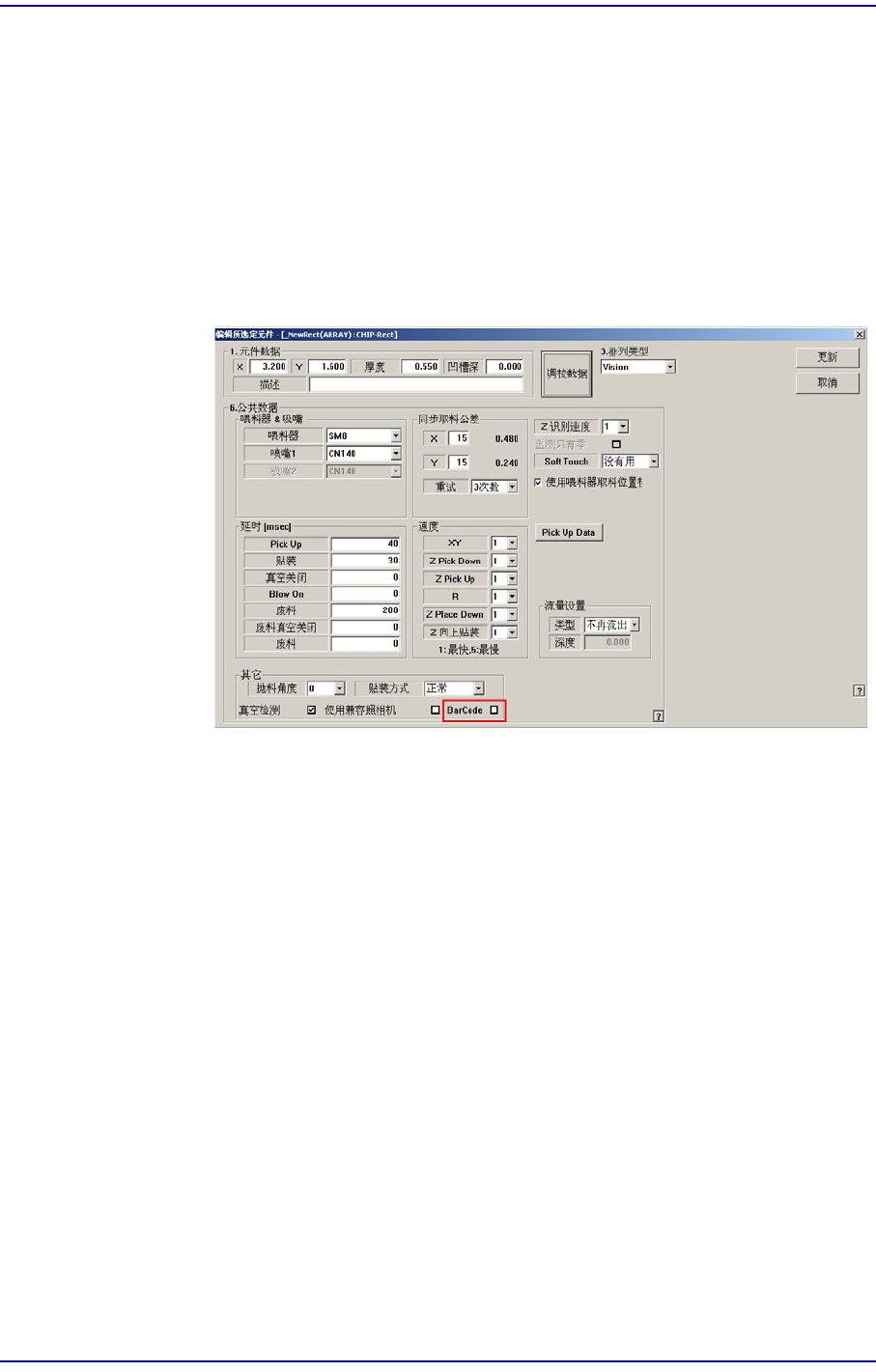 置画面圈选<BarCode>复选框显示供料器列表,该供料器供应所登记的