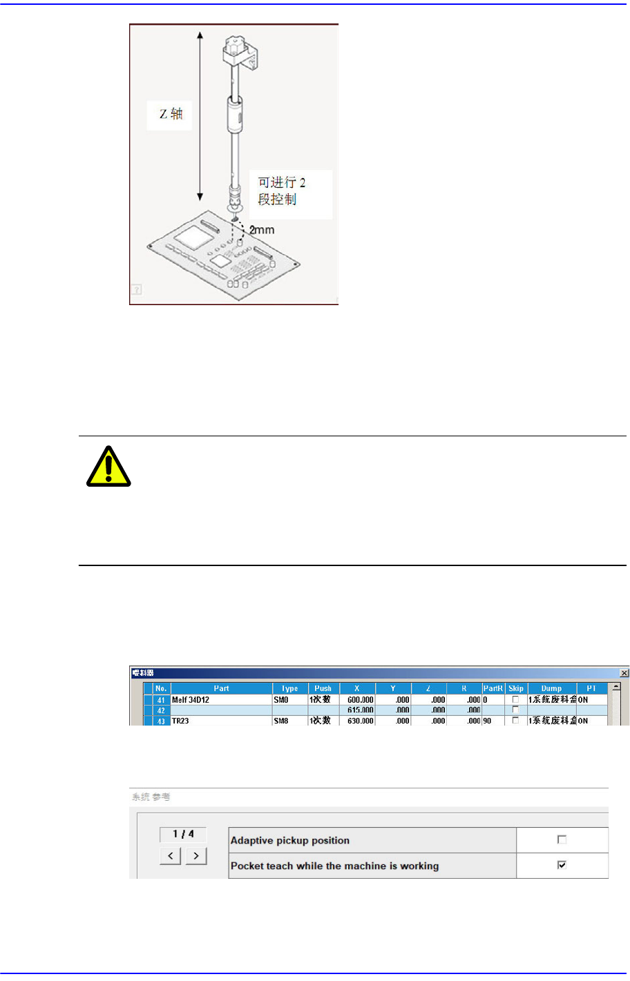装、头部下降时,与PCB顶面距离2mm时Z轴速度为4(Slow)。