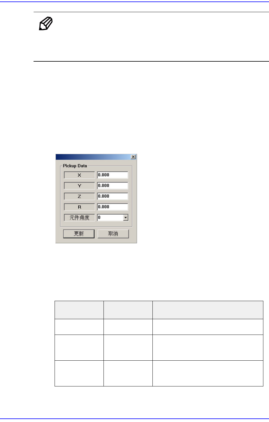 7-20 Next Generation, Multi-Functional Plac er DECAN S1 Administrator’s Guide 没有用 : 设置成被选定时不使 用此功能。 拾取 : 设 置成只在被选定时使用此功能。 贴装 : 设 置成被选定时只在贴装时使用此功 能。 检起 & 计数 : 设置成被选 定时吸附及贴装时使用此功能。 注意 对于冲击敏感的部品如 CSP 或 μ BGA , 贴…