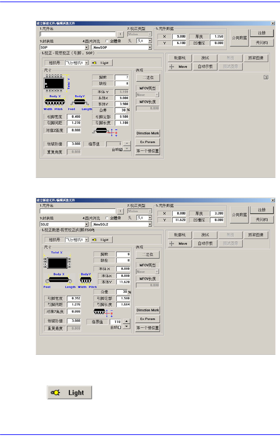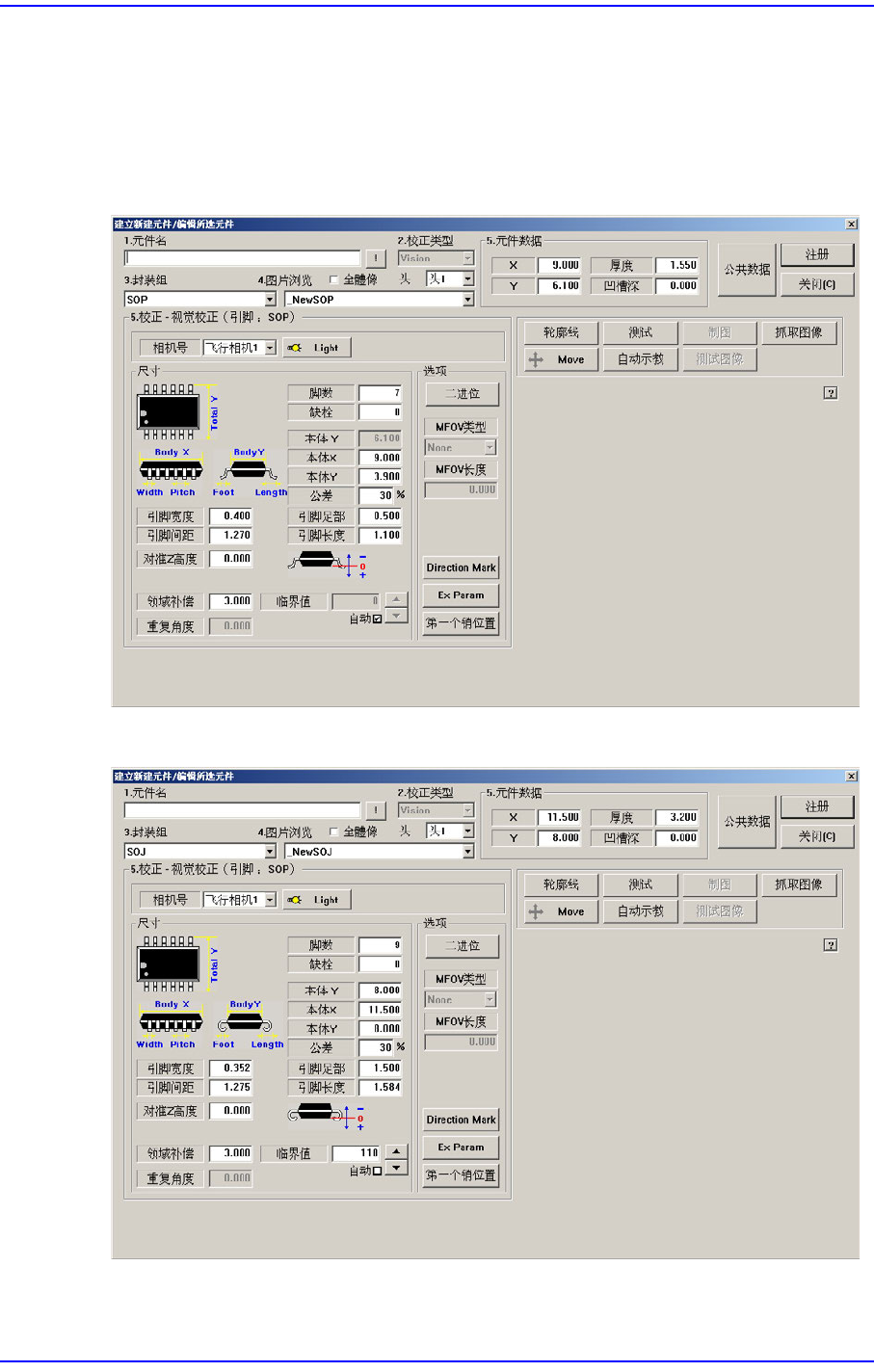 7-55 元件的登记 7.1.3. IC 部品的数据设定 7.1.3.1. SOP /SOJ/SOP2/SOJ2 部品的数据设定 设定有关 SOP 部品 排列数据。 图 7.18 “ 封装组 = SOP” 时的对话框 图 7.19 “ 封装组 = SOJ” 时的对话框