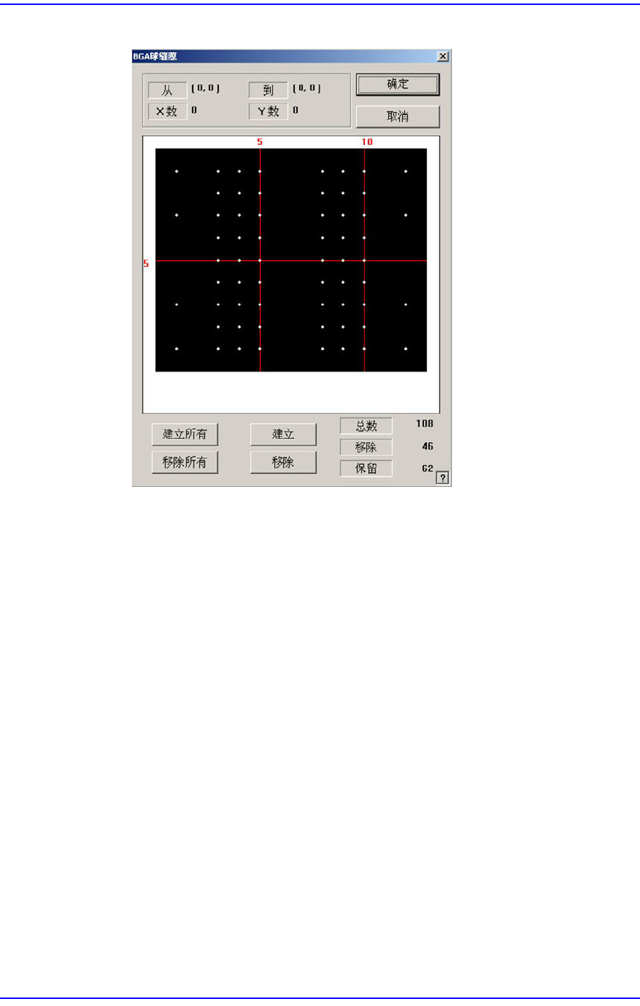 7-80 Next Generation, Multi-Functional Plac er DECAN S1 Administrator’s Guide 图 7.29 “B GA 部品的球空开 - 有已选择领域的状态 ” 对话框 < 建立所有 > 按钮 生成所有的球形 < 移除所有 > 按钮 删除所有的球形。 < 建立 > 按钮 生成选择领域的球形。 < 移除 > 按钮 …