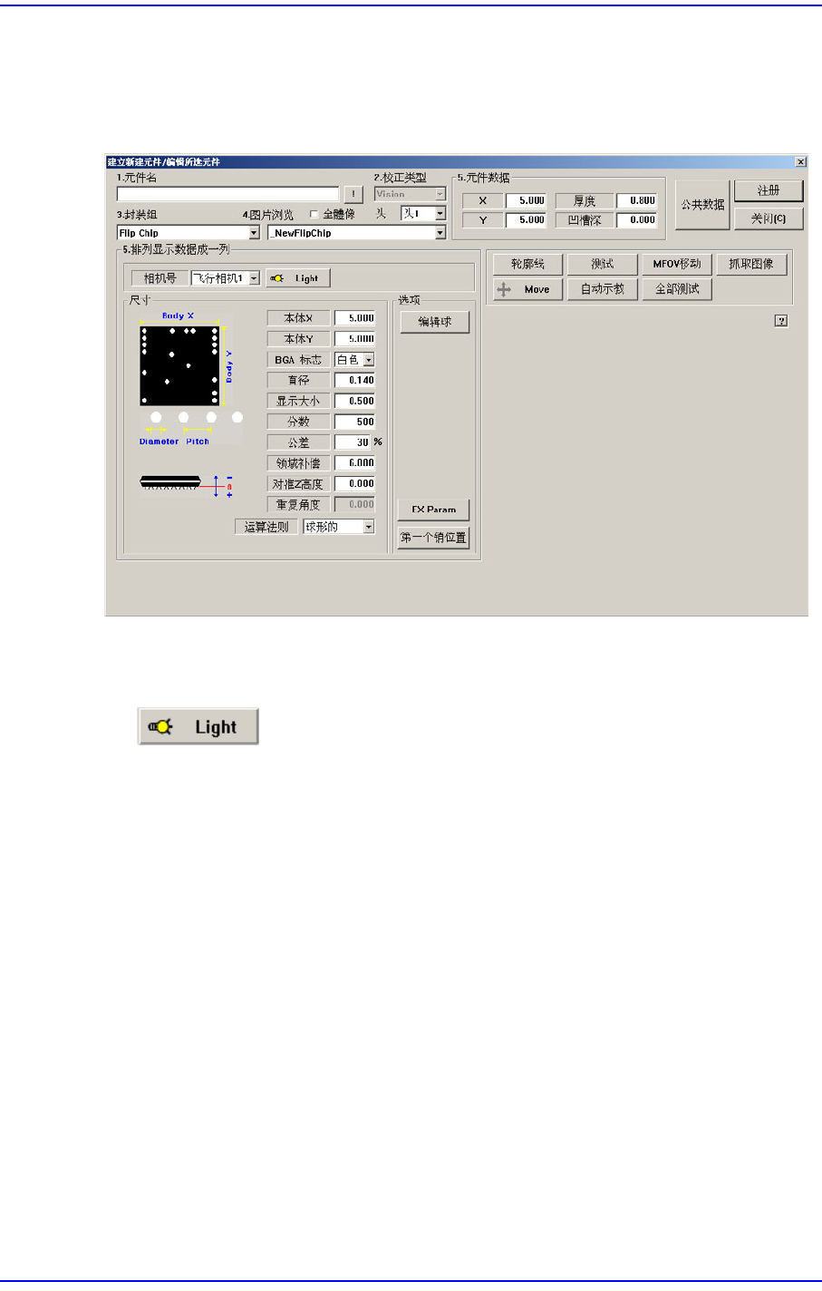 7-83 元件的登记 7.1.8. FLIP CHIP 部品的数据设定 设定有关 FLIP CHIP 部品的排列数据。 图 7.31 “ 封装组 = Flip Chip” 时的对话框 < 相机号 > 组合框 选择识别部品的摄象机。 详细事项 请参照 “ 7.1.1 共同 Align Data ” 。 按钮 设定识别部品用摄象机的照明度。 详细事 项请参照 “ 7.1.1 共同 Align Data ” 。 <…