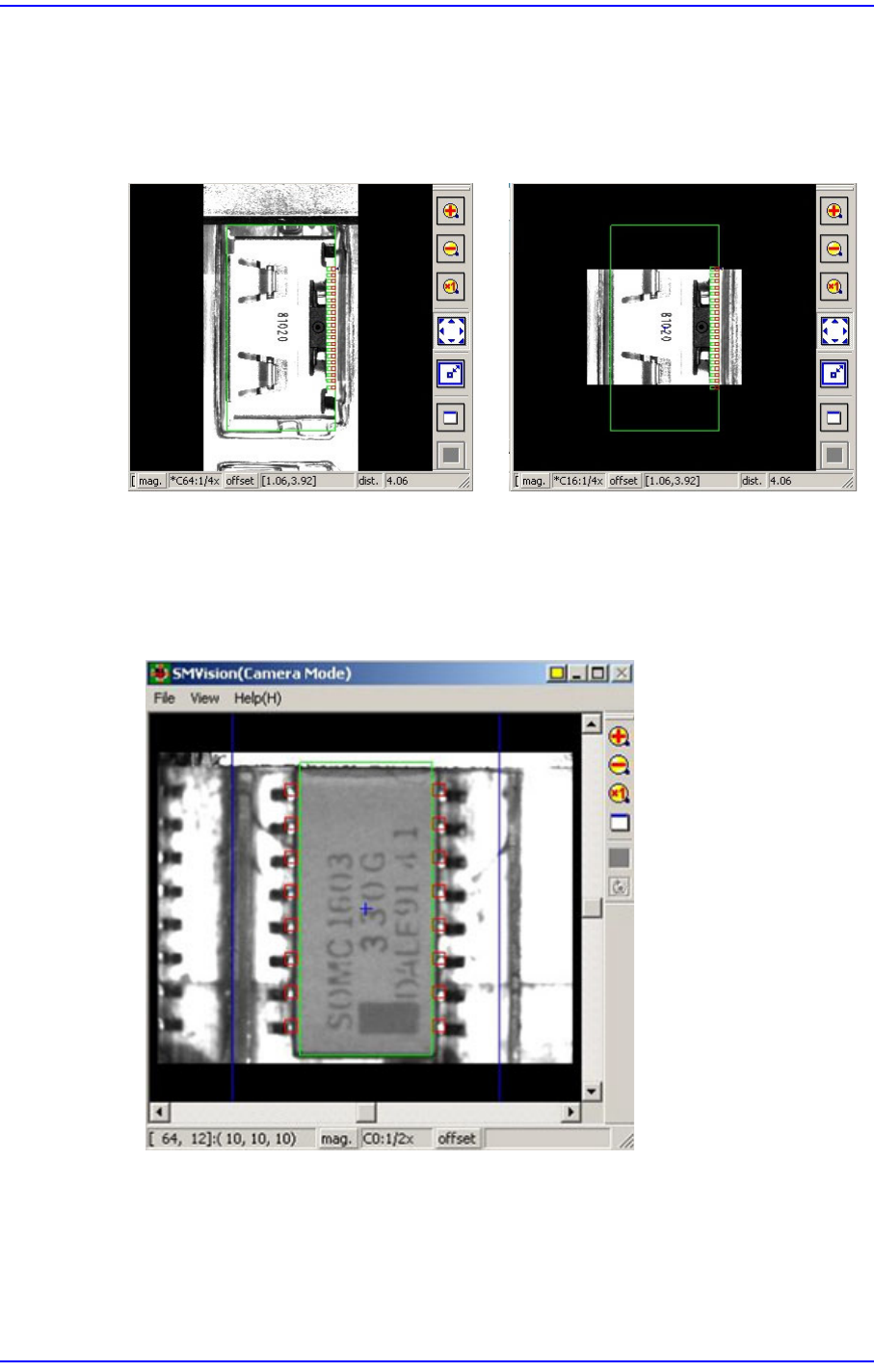 8-19 供应装置的设置 <Panorama V iew> 按钮 无法进行料槽示教的大型元件不会 在视觉窗口显示出整体形状。 此时, 可以使 用该功能对元件形状进行 “ 分割识别 ” 后再把 分割图像加以合成后显示在一个 视 觉窗口。 <Part Outline> 选择框 如果选择此选择框, 为确认吸附位置把 Fiducial Camera 移动到相应喂料器 位置, 则在 SMV ision 窗口显示考虑…