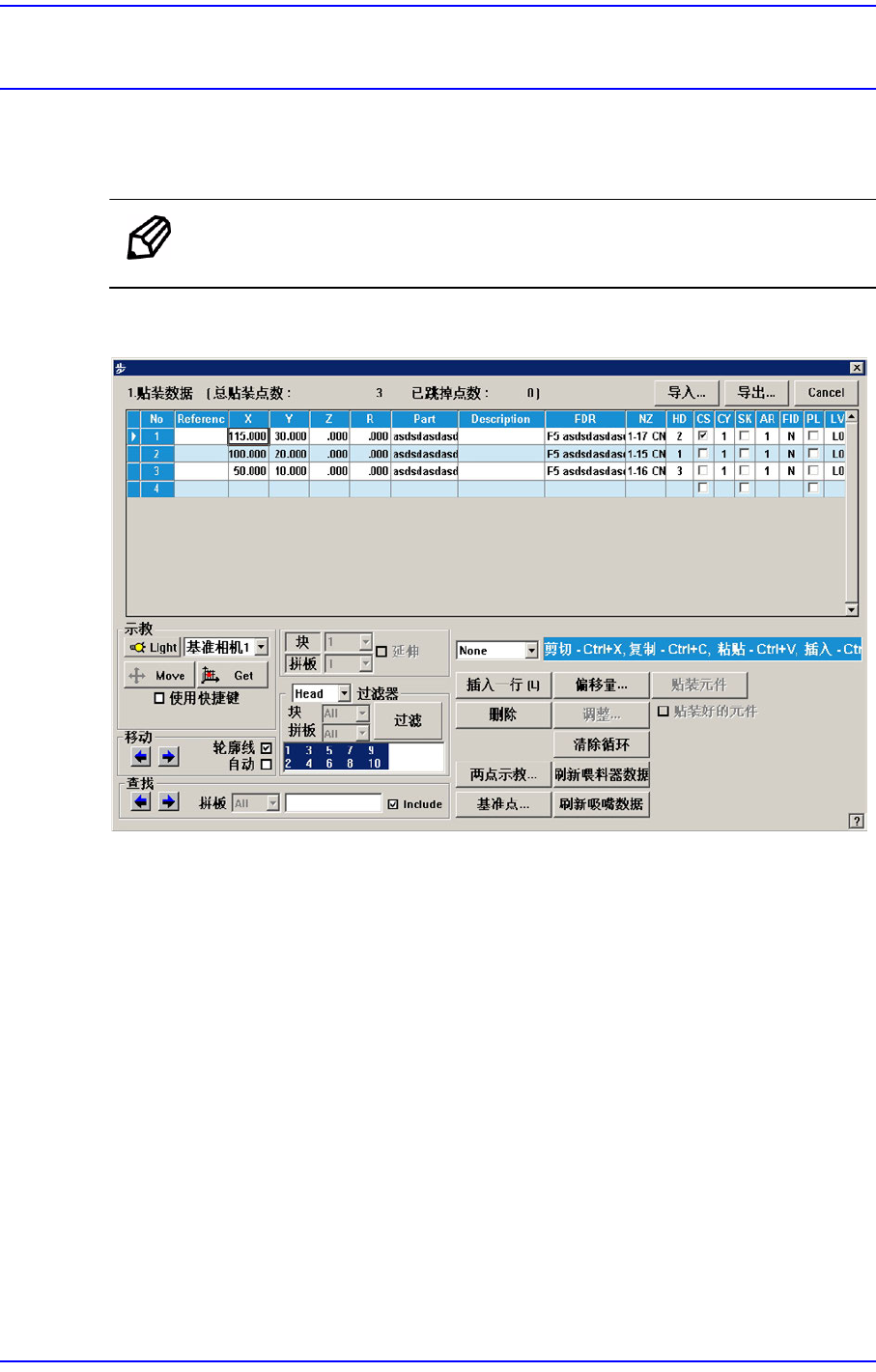 ‘贴装步骤’子菜单编辑有关PCB贴装点的位置,部品的基准点标记,要贴装的部