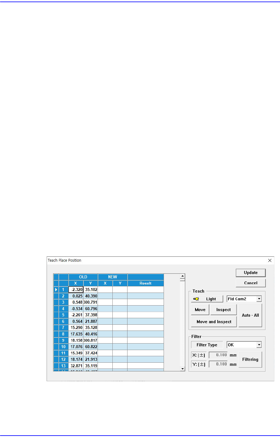 它执行给贴装点的位置追加偏移量数的功能。 在执行此功能前,X列,Y列,Z
