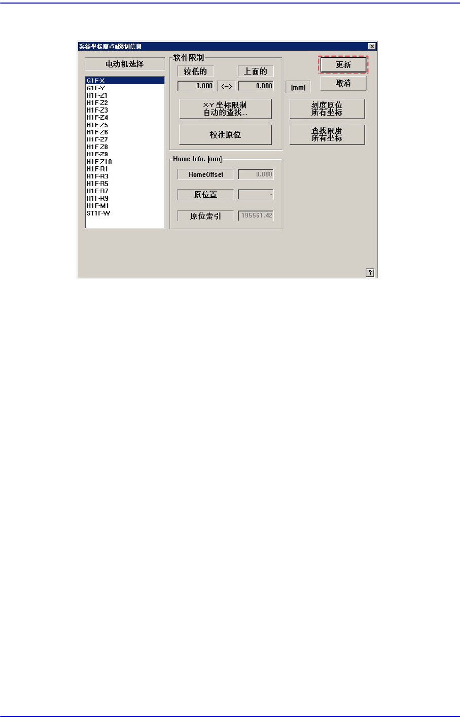 4. 点击<FIND LIMIT ALL AXIS> 按钮。