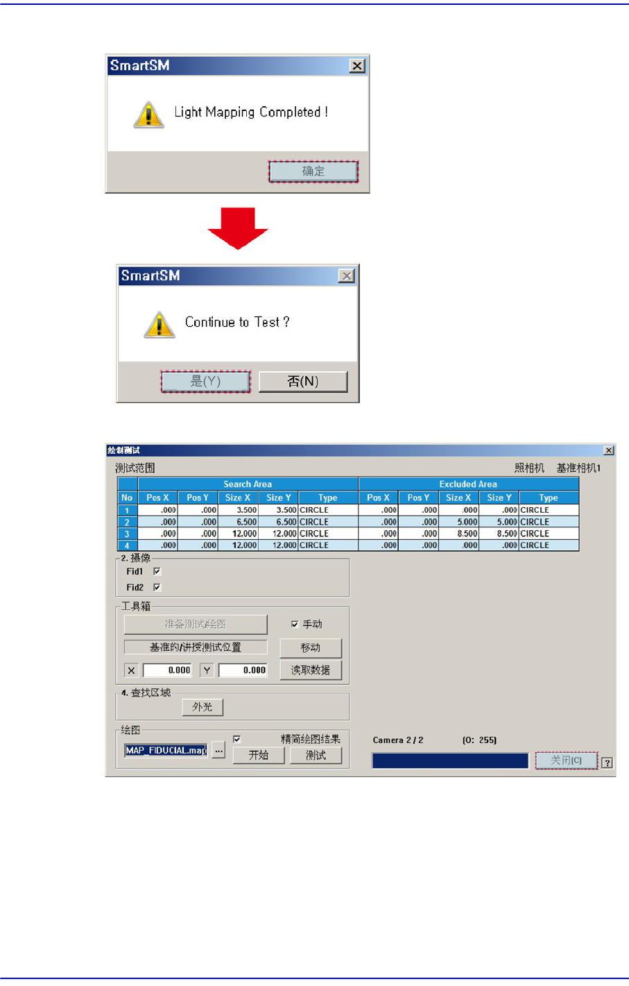 15-42 Next Generation, Multi-Functional Plac er DECAN S1 Administrator’s Guide 3. Light Mapping 完毕后, 针对 Mapping 结果实行 Te s t 。 4. T est 完毕后, 单击 <Close> 按钮结 束 Mapping T est 对话框。