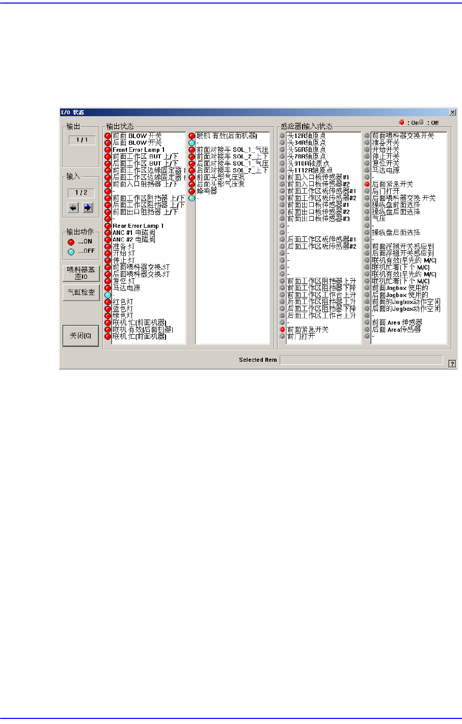 ‘I/O’子菜单执行设定或表示设备的各种I/O (输入/输出)传感器的状态的功能。