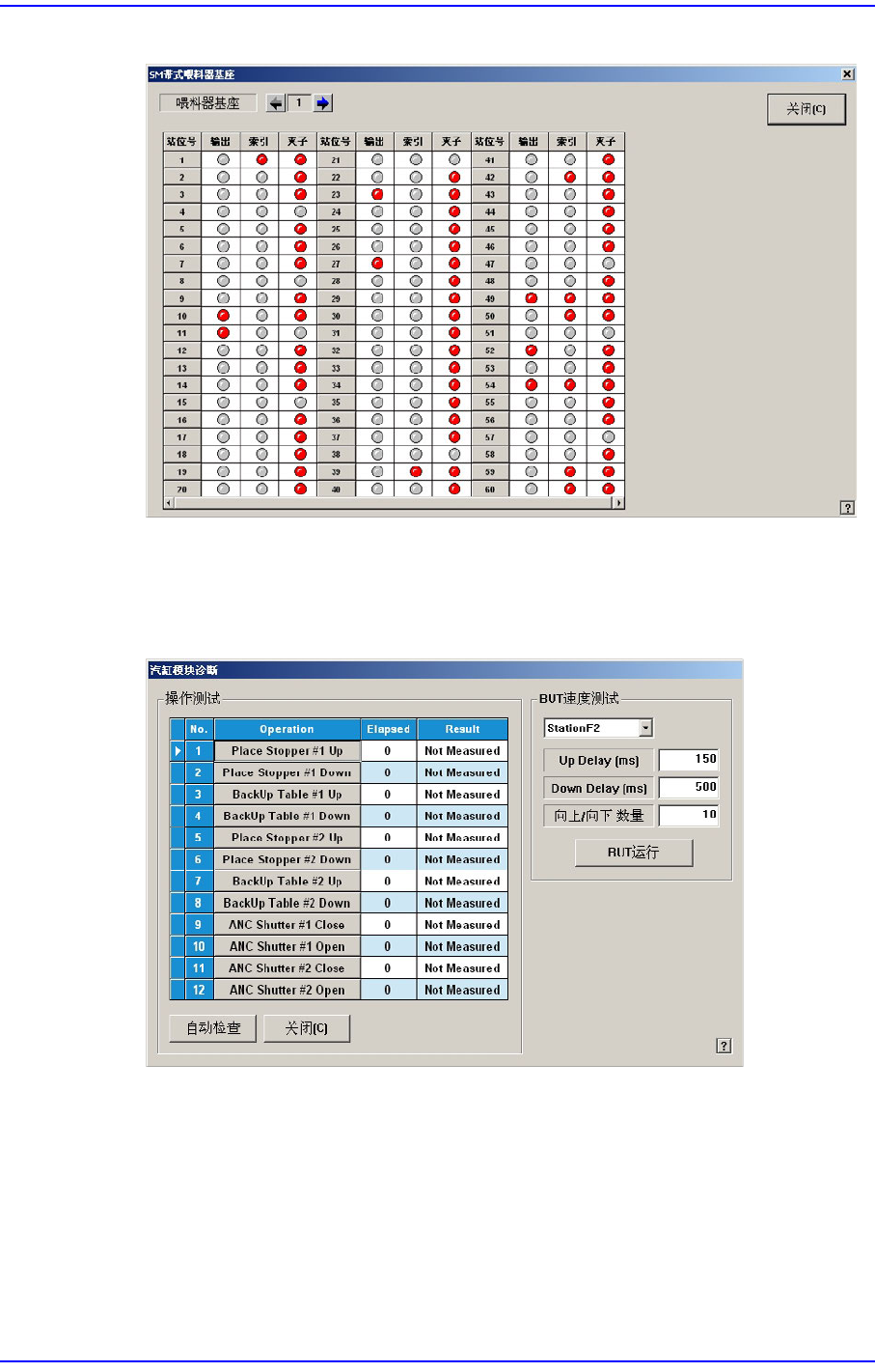 16-3 Diagnosis( 诊断 ) 图 16.4 “SM Tape Feeder base“ 对话框 < 汽缸检查 > 按钮 检查 Cylinder Module. 点击此 按钮则显示如下对话框。 图 16.5 “Diagnosis: Cylinder Module Diagnosis“ 对话框 < 操作测试 > 领域 表示将要检查的装置的动作清单。 Place Stopper #1(#2) U…