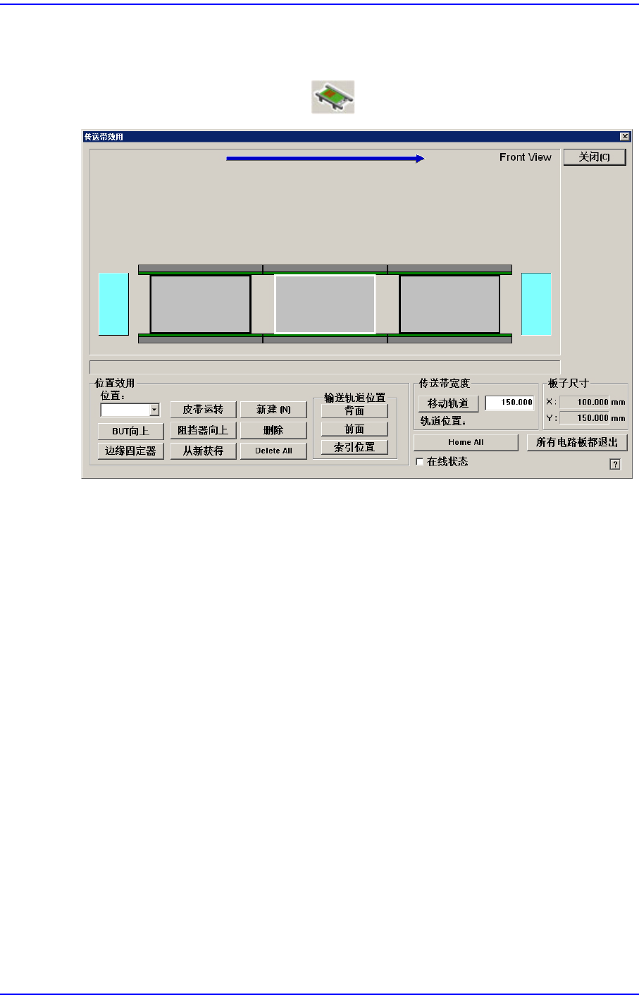 16-5 Diagnosis( 诊断 ) 16.2. 传输装置 ( Conveyor ) [F3] 检查传输装置领域的各种装置的 状态。 单击此按钮时显示如下的对话框。 详细事项 请参照 “ 4.5 传送部分 (Conveyor) ” 。
