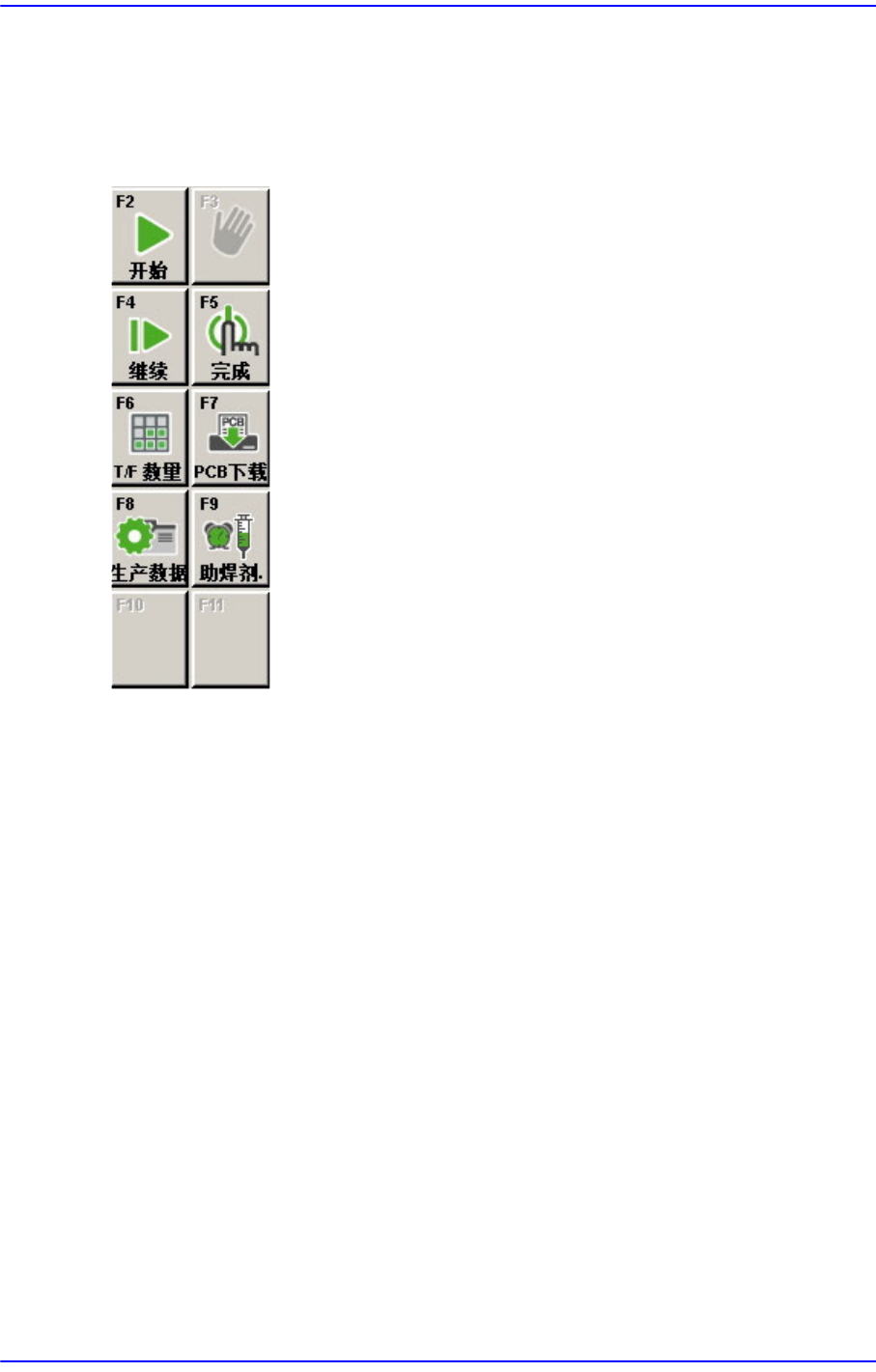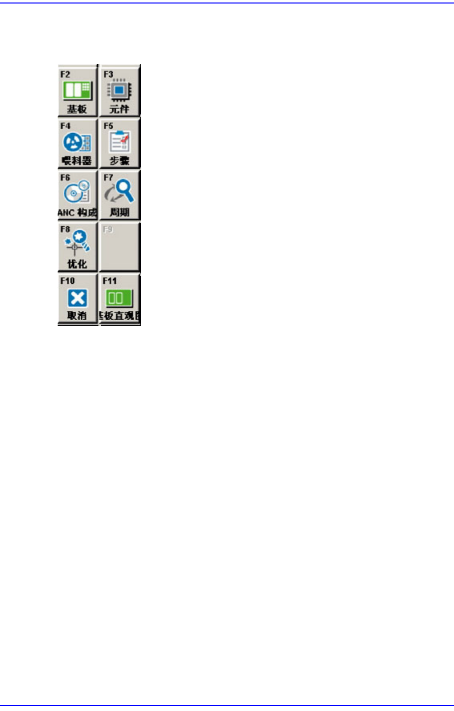 2-6 Next Generation, Multi-Functional Plac er DECAN S1 Administrator’s Guide 基板直观图 (PCB Layout) 显示 PCB 形象及 部件的贴装位置。 2.1.2.2.2. ‘ 生产 ’ 菜单工具栏的辅助菜单工具栏 开始 ( St ar t ) 下载 PCB 文件后 开始作业。 停止 ( St op ) 停止作业。 继续生产 Cont. ) …