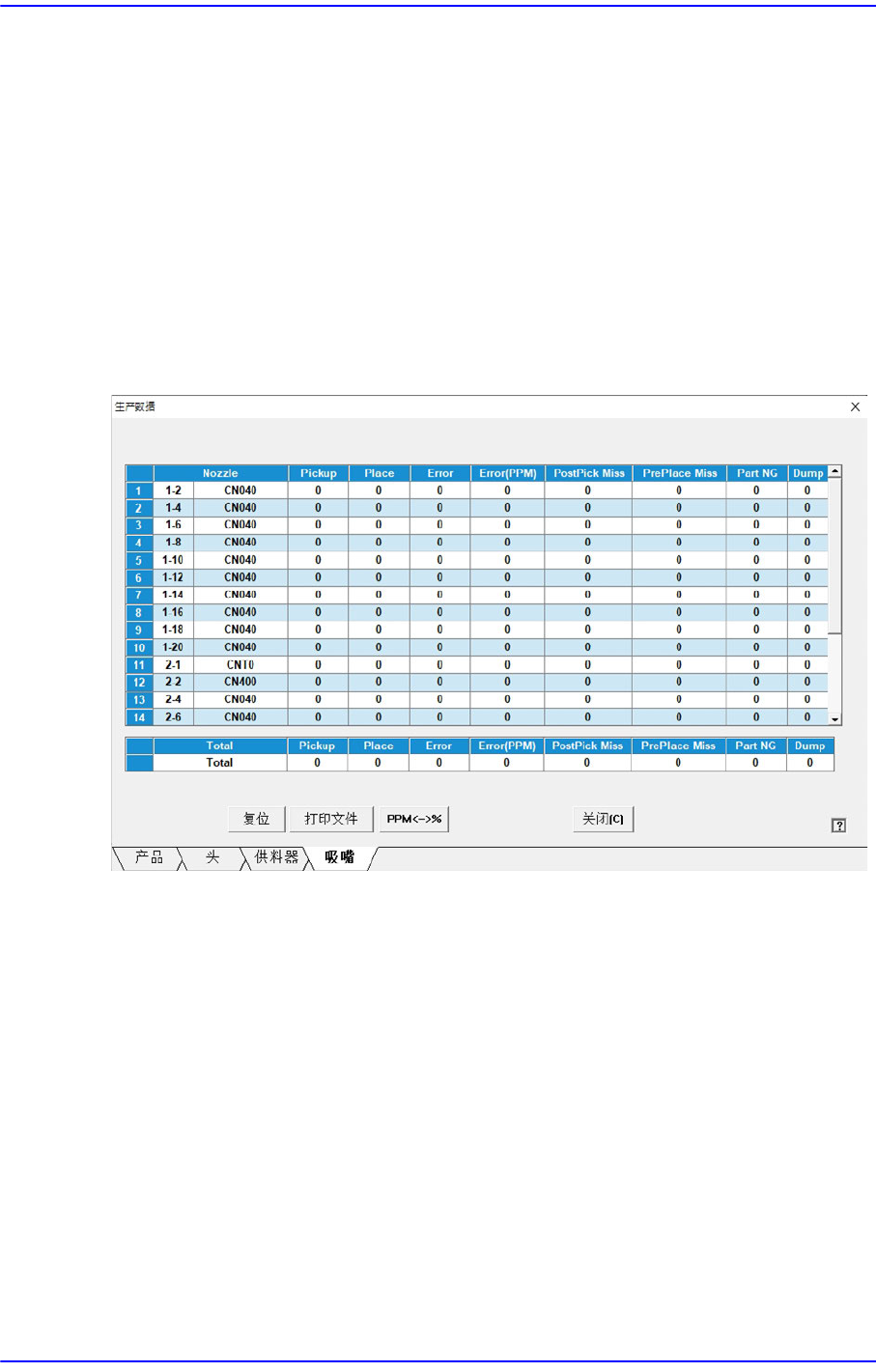 吸嘴无法贴装部件时的故障用PPM单位显示。