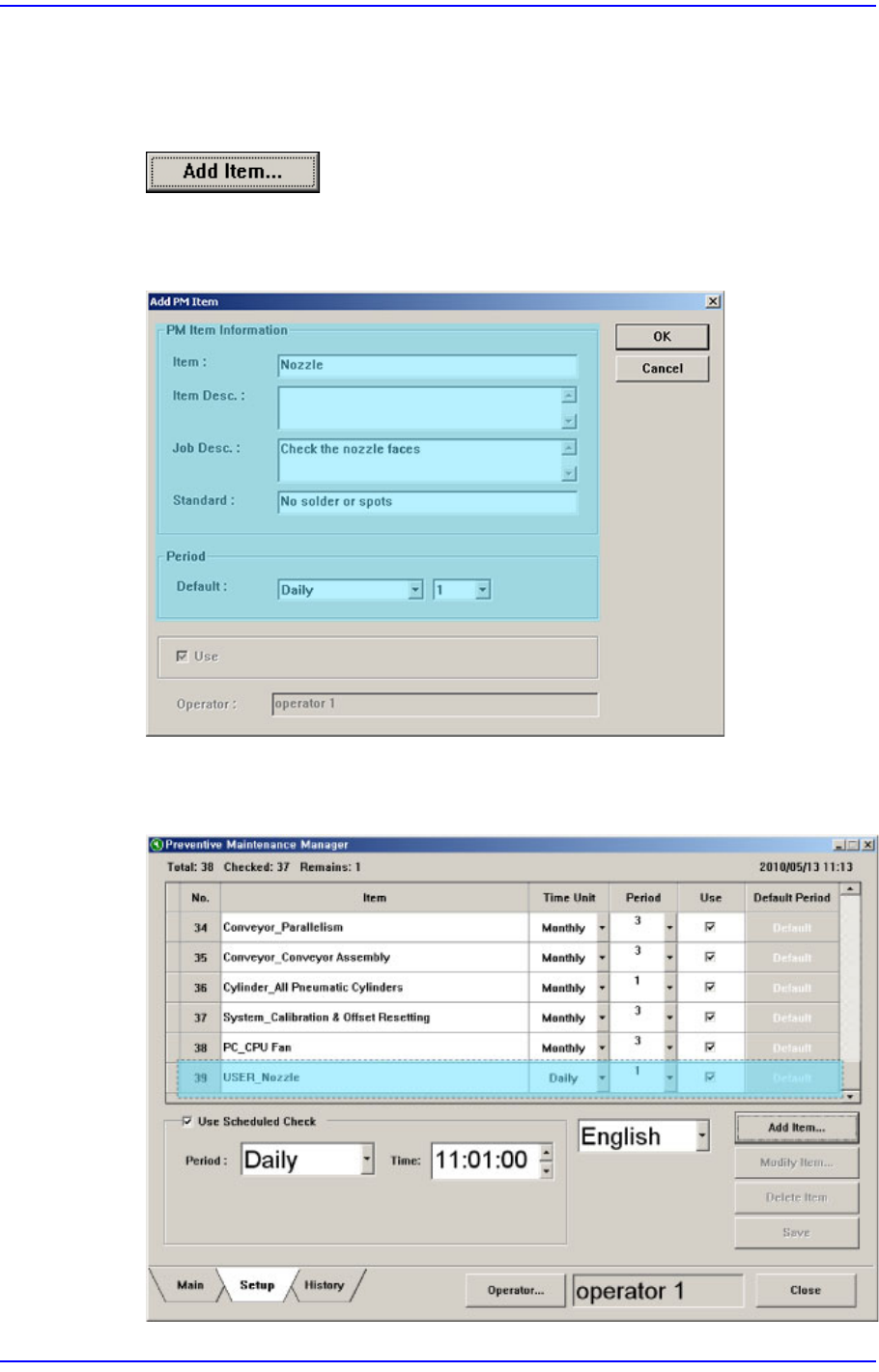 在’Add PM Item’对话框中输入要增加的项目后,设置检查周期。