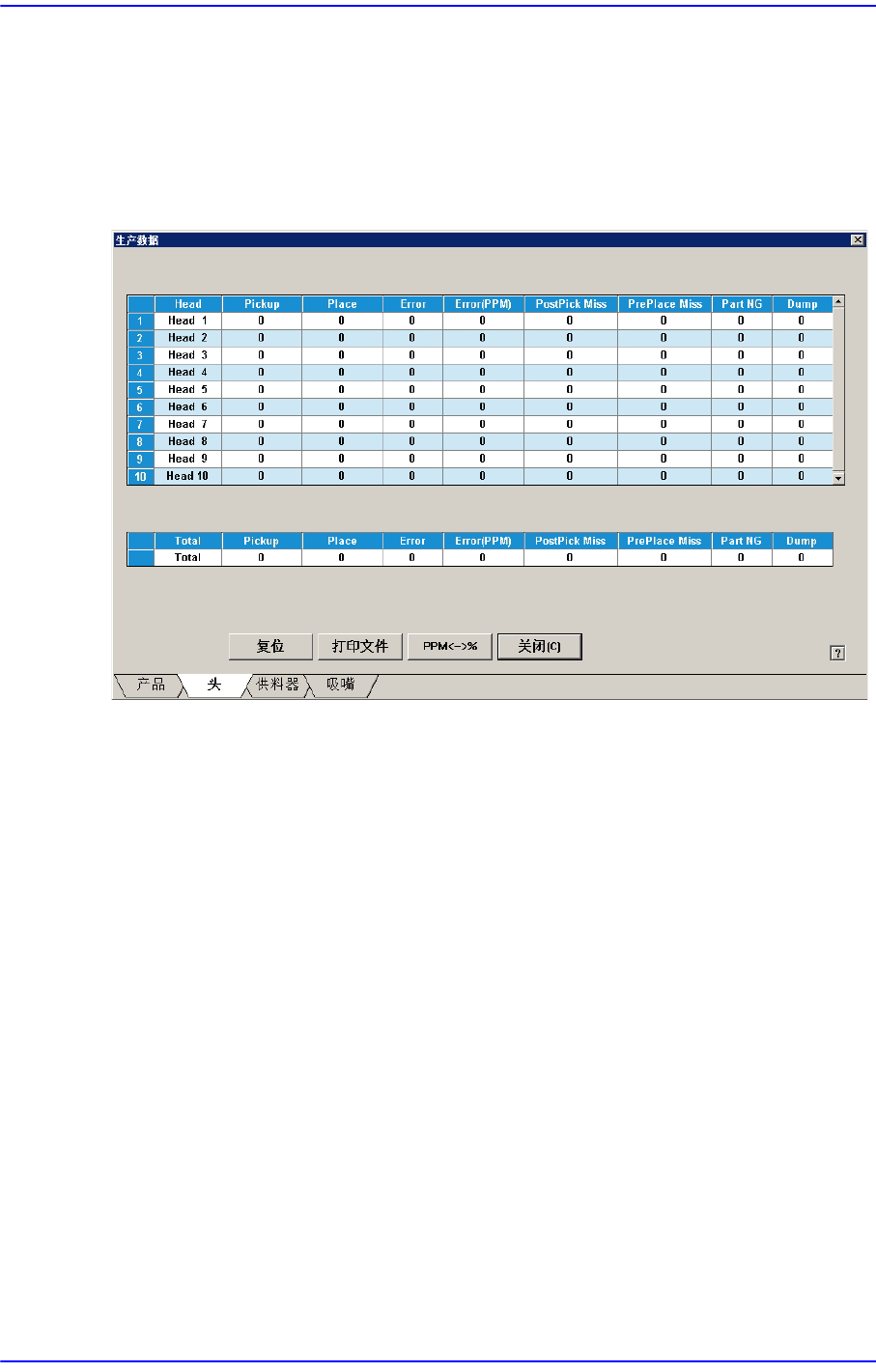 表示各磁头的作业信息,显示跟贴装有关的全部统计信息。