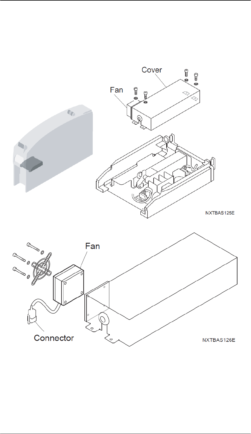 3. 拧下螺栓(4 根),将风扇从 DC 电源盖罩中取出后进行更换。