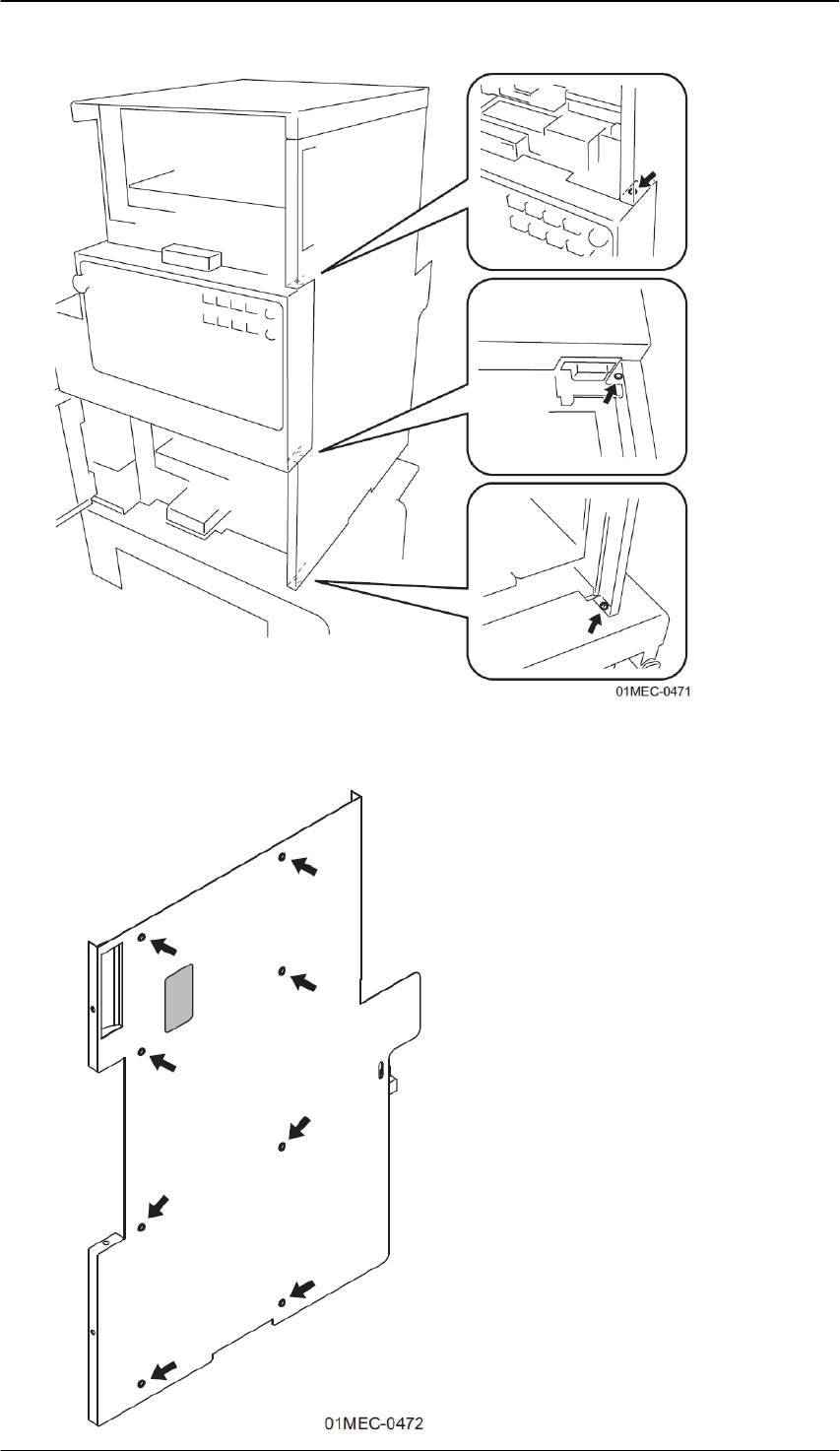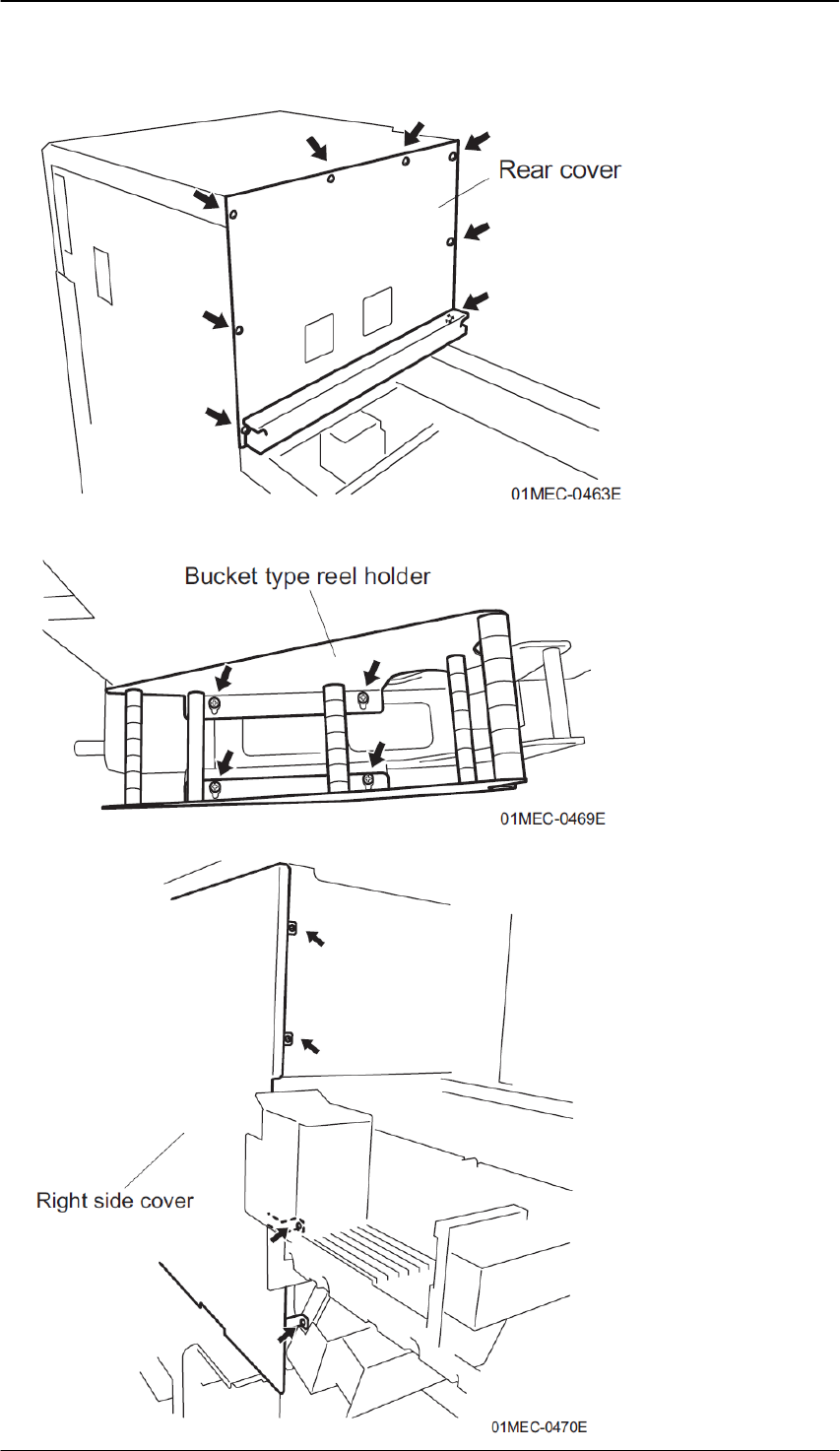 Edition 1.0 N X T I I 用户高级培训手册 FMC-1010-003-0 C 3-69 FUJI MACHINE MFG. CO., LTD 侧盖板 ( 右侧 ) 1. 请取下后盖板。 2. 如果料斗型料带托架安装在侧盖板 ( 右侧 ) 上,请取下料斗型料带托架。 3. 请拆除单元后面的侧盖板 ( 右侧 ) 的固定螺丝 (4 个 ) 。