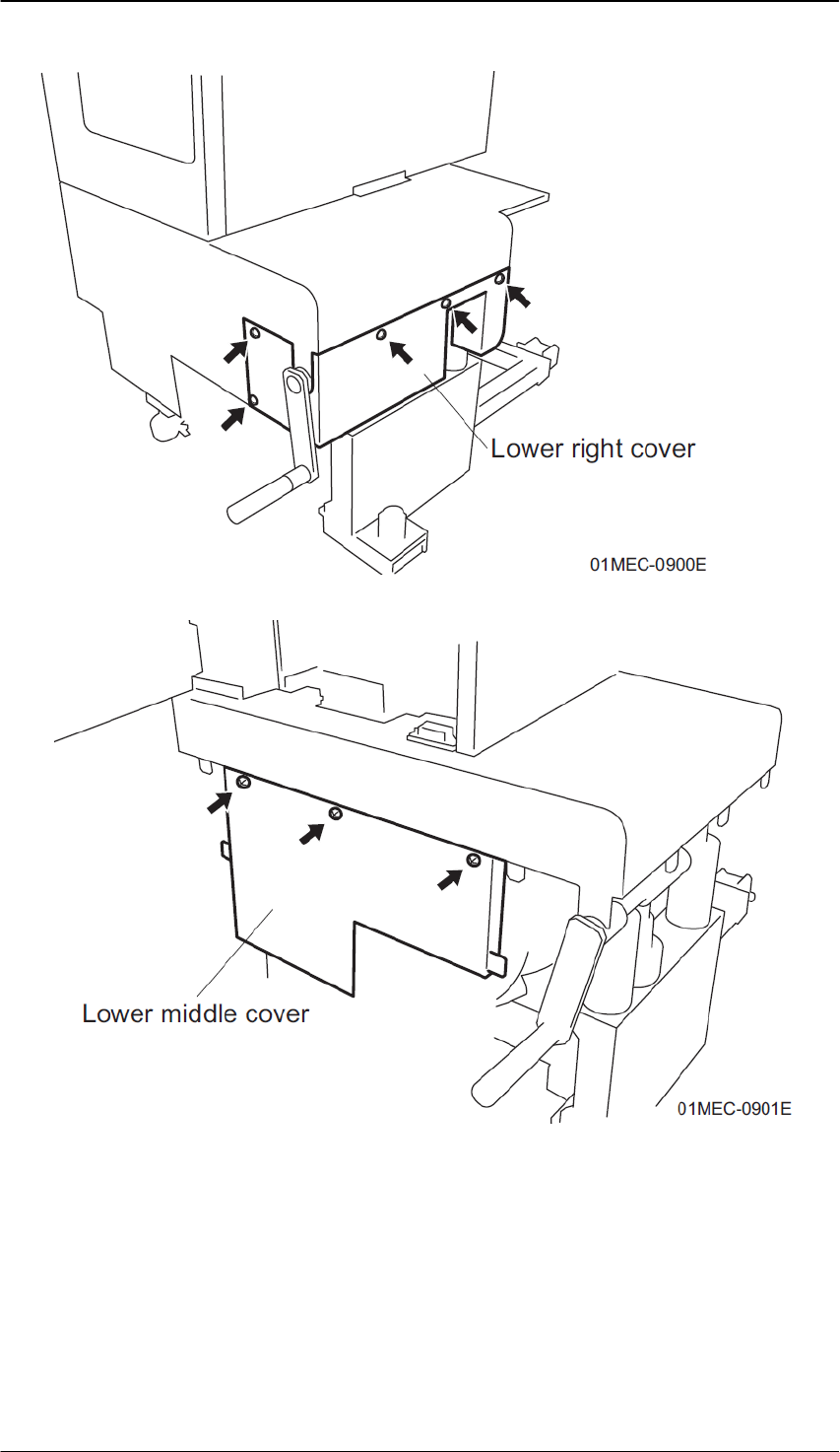 4. 请拆除下图所示的侧盖板(右侧)的固定螺丝(3 处)。