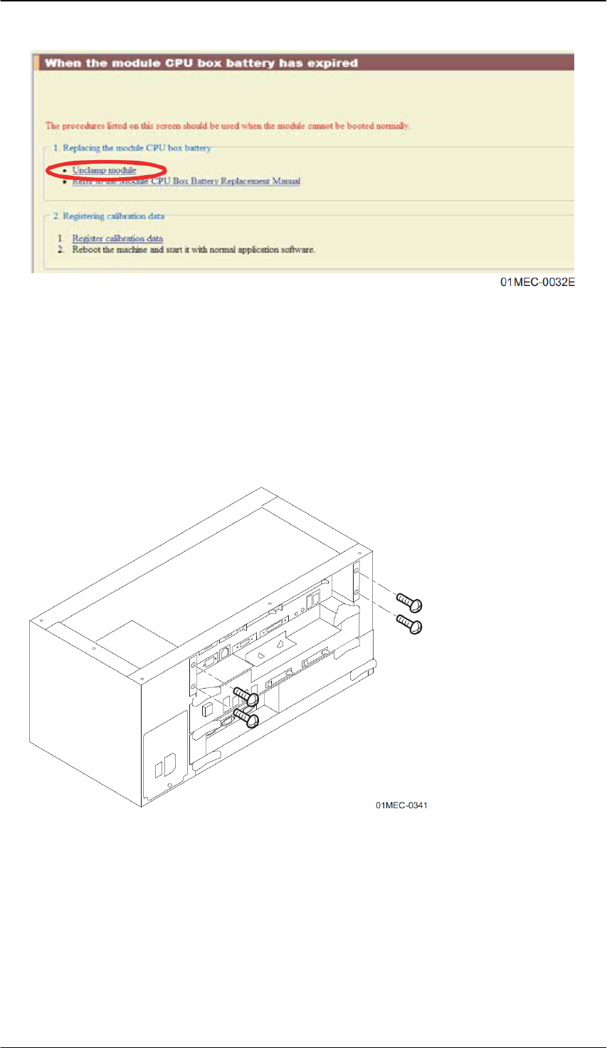 7. 电池更换后,按照与拆除相反的顺序安装 CPU 箱并将其安装到模组上。